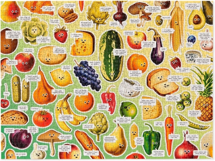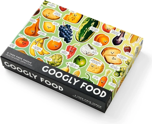 Kolorowa kolażowa scena wesołych produktów spożywczych z oczami „googly” przynosi zabawne detale i przyjemne wyzwanie zarówno dla początkujących, jak i doświadczonych układaczy.