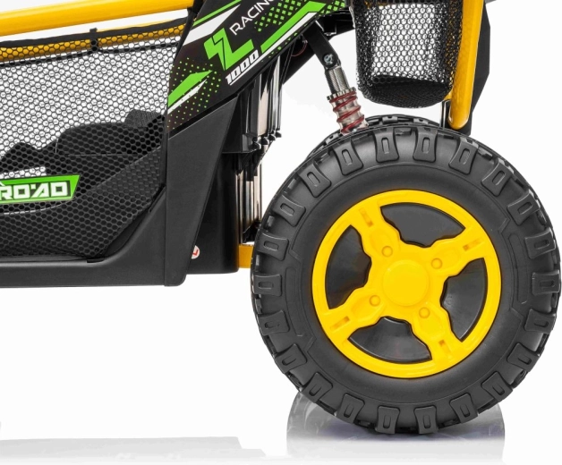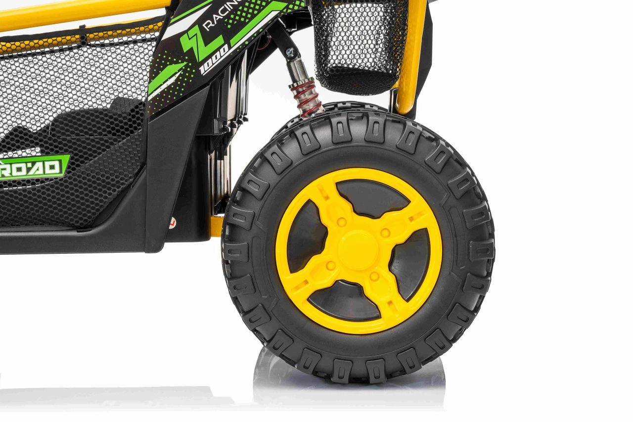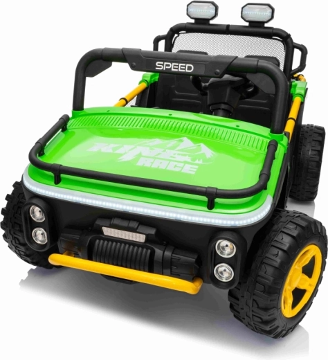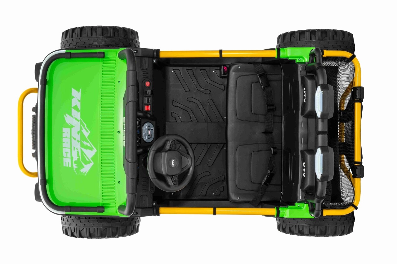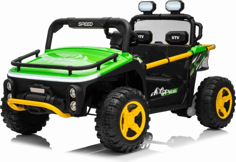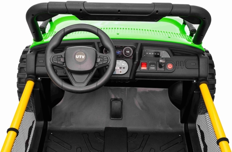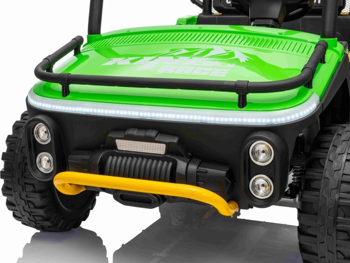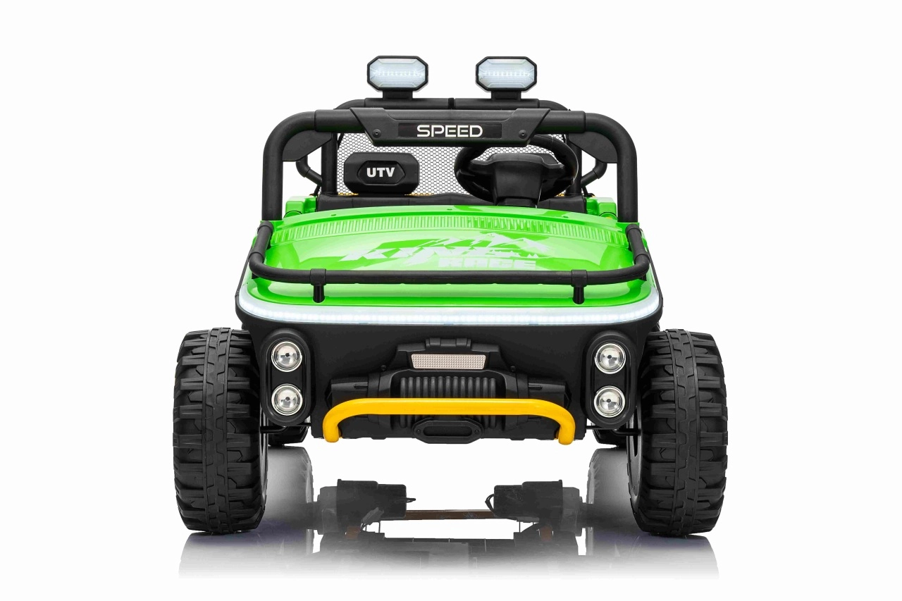 Odkryj zabawę w terenie z dziecięcym pojazdem UTV SPEED. Dzięki mocnemu napędowi 2×80 W i wysokiemu prześwitowi 14 cm pokonuje nierówności z łatwością, a duże koła EVA 30×12 cm redukują drgania i zapewniają świetną przyczepność. Dzieci zachwycą świecące przednie światła LED oraz górna belka świetlna, a rodziców ucieszy pilot 2,4 GHz z trzema prędkościami i awaryjnym przyciskiem Stop.