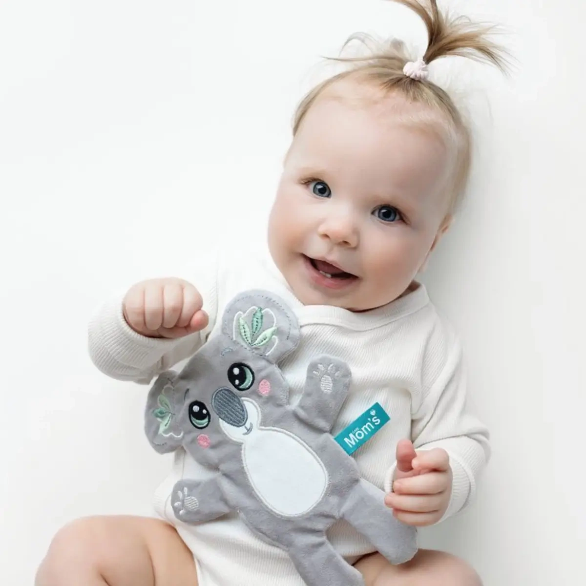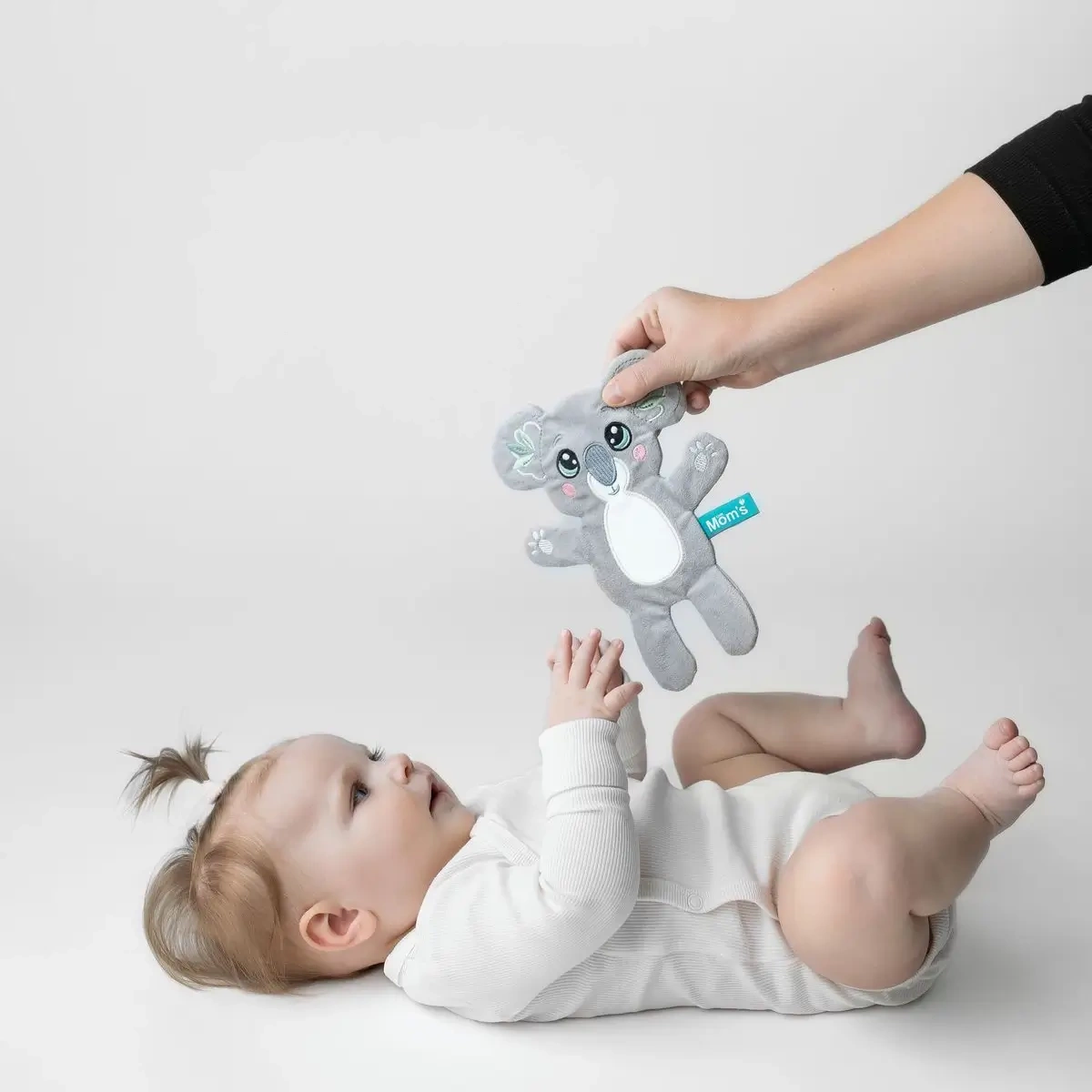 Szeleściująca materiałowa koala marki Mom's Care to delikatna sensoryczna zabawka dla noworodków 0+, która wspiera rozwój zmysłów i uspokaja dzięki subtelnemu szelestowi. Lekka i płaska konstrukcja świetnie leży w małych rączkach, miękki welwet jest przyjemny w dotyku, a hipoalergiczne materiały zapewniają bezpieczeństwo. Idealna do łóżeczka, wózka i fotelika samochodowego.
