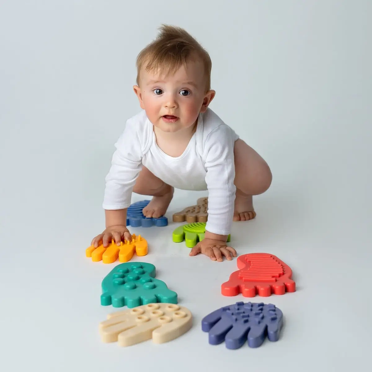 SENSORKI otwierają przed dziećmi barwny świat wrażeń dotykowych. Chodzenie i pełzanie po elementach o różnych powierzchniach wzmacnia drobne mięśnie stóp i dłoni, poprawia świadomość własnego ciała oraz sprzyja lepszej integracji bodźców sensorycznych. Produkt nagrodzony Kids' Time Star 2025 łączy motywację do zabawy z przemyślaną stymulacją sensoryczną i świetnie sprawdza się w codziennych ćwiczeniach.