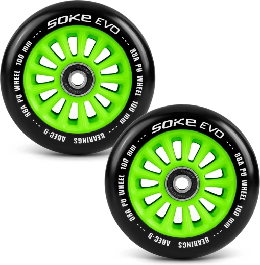 Wizualnie wyraziste zielone rdzenie kółek nadadzą Twojej hulajnodze sportowy wygląd i podkreślą wysoką jakość wykonania. Standardowa średnica 100 mm oraz ośka 8 mm zapewniają szeroką kompatybilność z wieloma modelami hulajnóg freestyle i miejskich.