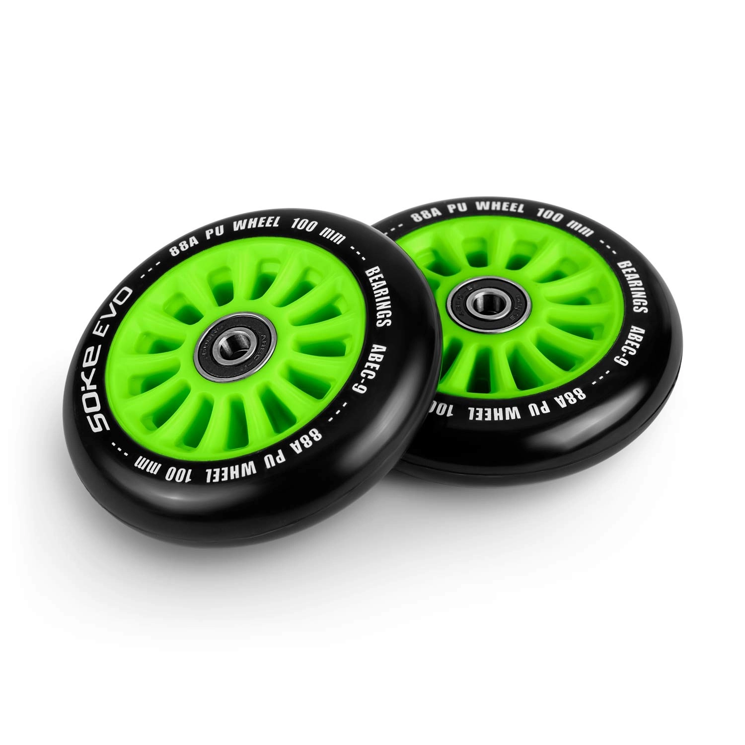 Kółka SOKE 100 mm są przeznaczone dla użytkowników, którzy oczekują wyższej prędkości, stabilności i niezawodności podczas codziennej jazdy oraz nauki trików. Mieszanka poliuretanu o twardości 88A gwarantuje pewny grip i niski opór toczenia, a łożyska ABEC-9 nadają hulajnodze żwawą akcelerację i płynne rozpędzanie.