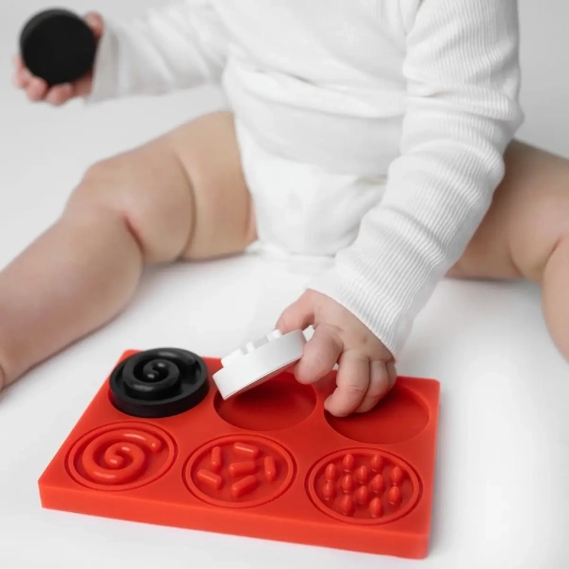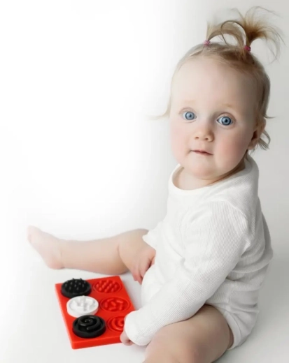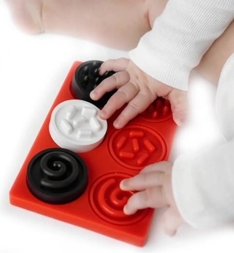 Sensoryczne puzzle–kółeczka zapewniają dzieciom od najwcześniejszych lat bezpieczne odkrywanie świata poprzez dotyk. Trzy kółeczka z różnymi powierzchniami i kontrastowymi pastelowymi barwami zachęcają do chwytania, badania i wkładania w odpowiednie otwory. Zabawa naturalnie rozwija koordynację ręka–oko, motorykę małą oraz percepcję kolorów i kształtów.