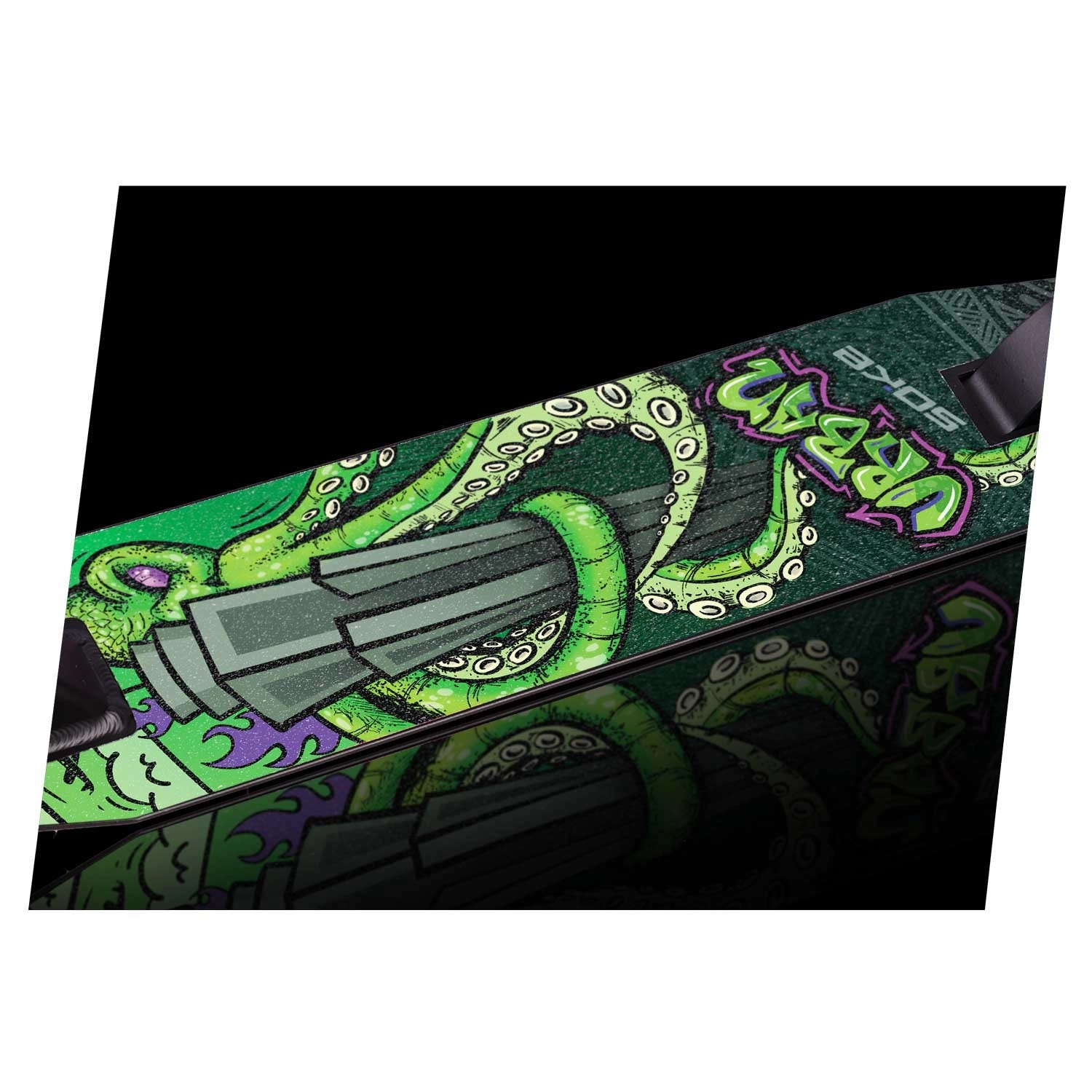 Grip tape SOKE Evo – Octopus został zaprojektowany dla jeźdźców, którzy oczekują maksymalnej pewności podczas jazdy i wykonywania trików. Dzięki wysokiej jakości, abrazyjnej powierzchni oferuje niezawodny grip i stabilność, a uniwersalne wymiary ułatwiają precyzyjne przyklejenie do większości hulajnóg freestyle i miejskich. Design Octopus podkreśli Twój styl i doda hulajnodze unikalnego charakteru.