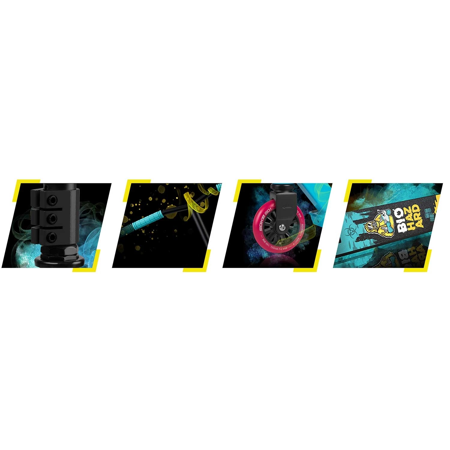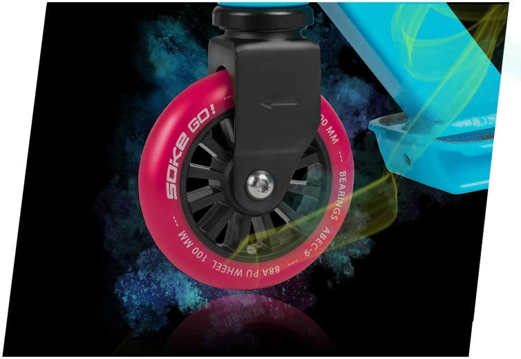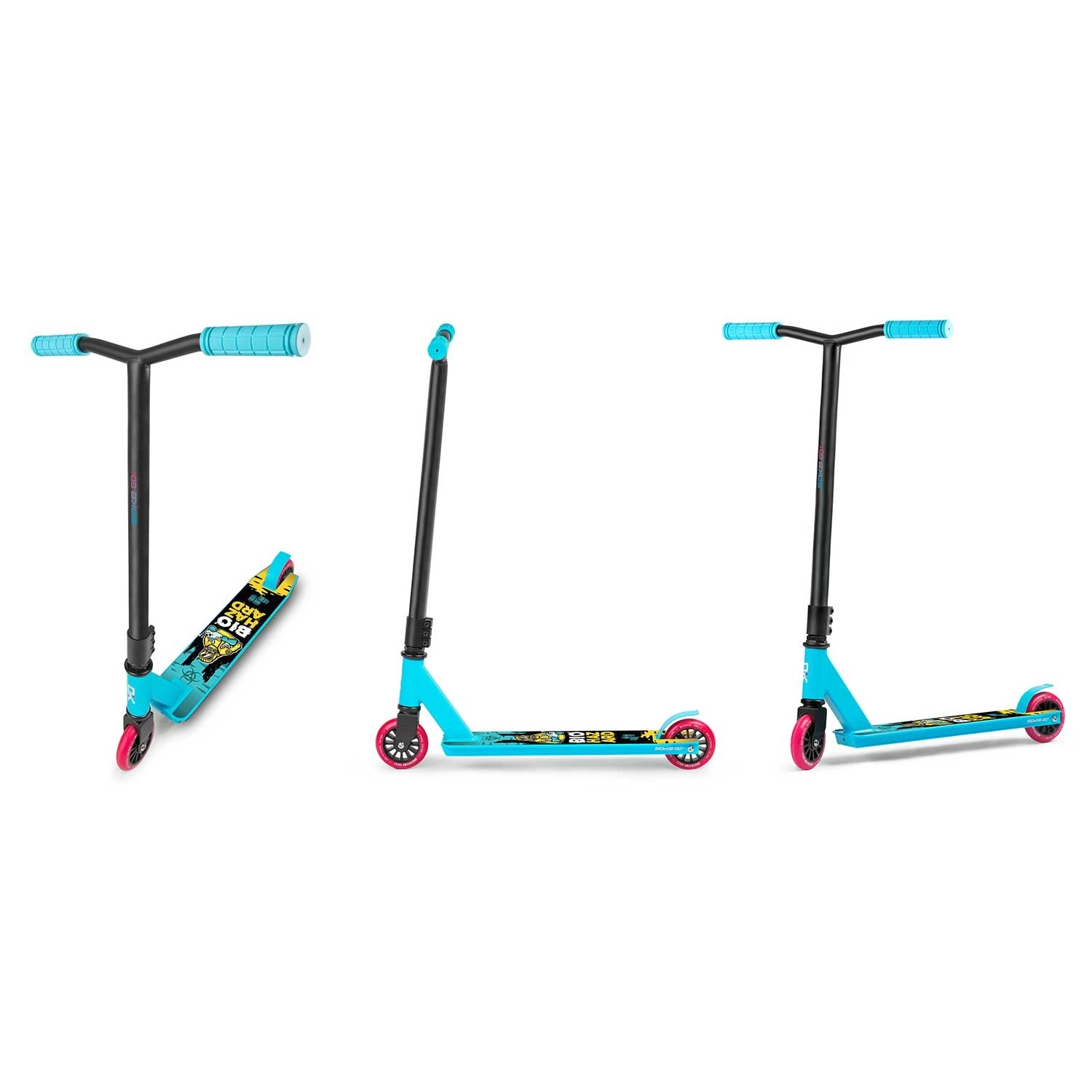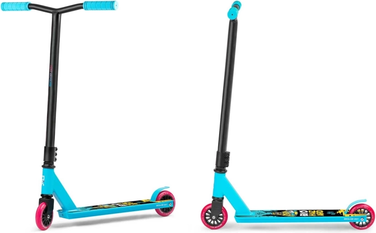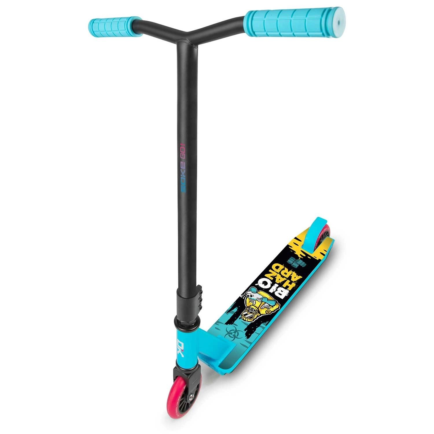 Model SOKE GO! w turkusowym kolorze został zaprojektowany dla pewności przy trikach, szybkiej akceleracji i długiej żywotności. Szeroka kierownica Y z wygodnymi gripami TPR 145 mm daje znakomitą stabilność, a sztywna aluminiowa potrójna obejma trzyma wszystko mocno w ryzach. Niska waga 2,9 kg pomaga przy whipach i spinach.