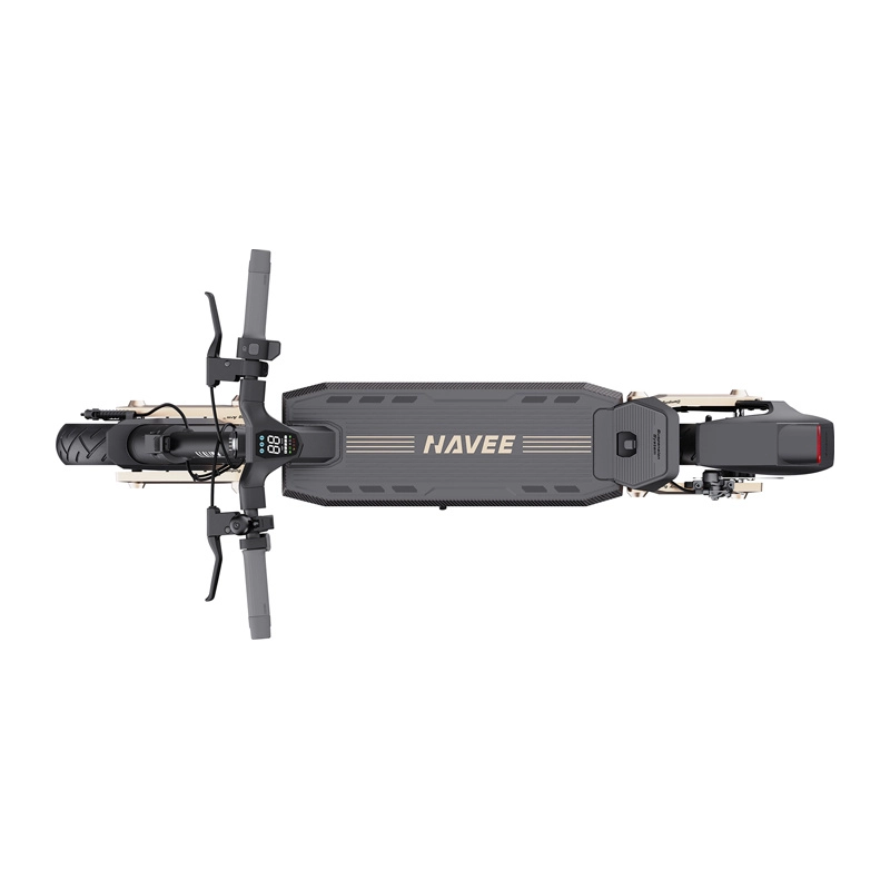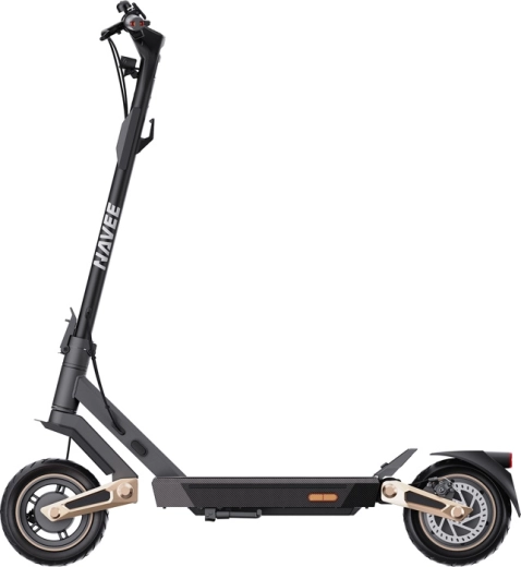 Bezdętkowe opony 10" samouszczelniające się z warstwą żelu są odporne na przebicia do ok. 4 mm. Szeroka kierownica z nachyleniem 5° poprawia ergonomię, a powiększony podest zwiększa stabilność. Inteligentne funkcje obejmują Apple Find My, odblokowywanie zbliżeniowe, oświetlenie ambientowe z 15 trybami oraz sterowanie przez aplikację NAVEE.