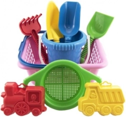 - Koszyk, wiaderko, sitko, łopatka, szpadel, grabki, 2 foremki