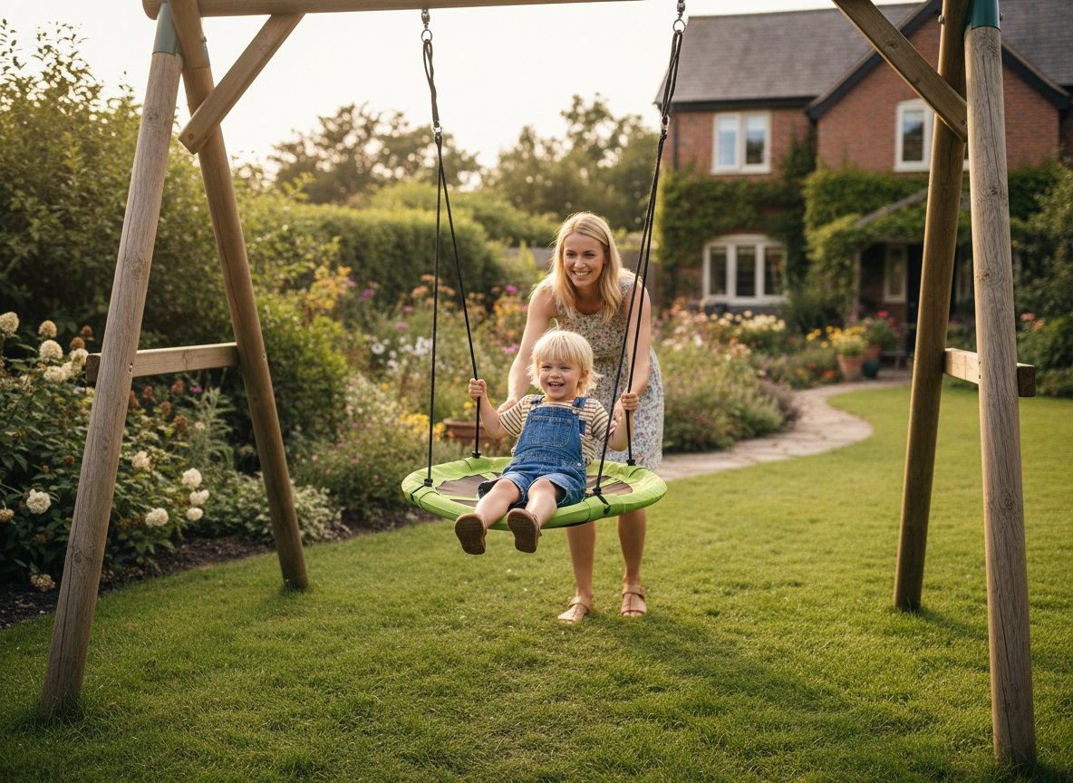 Kompatybilna ze standardowymi ramami typu A i zawieszeniem w ogrodzie. Pewne mocowanie i stabilność dla bezpiecznej zabawy na świeżym powietrzu.