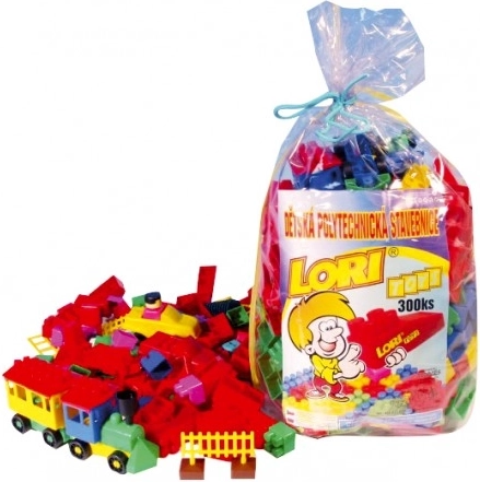 Klocki Lori 300 łączą świetną zabawę z rozwojem dziecięcej wyobraźni. Dzięki trzem rodzajom klocków – małym, średnim i dużym – dzieci zbudują domy, budowle oraz własne oryginalne projekty. Wytrzymałe plastikowe elementy są dopasowane do małych dłoni i dobrze trzymają się razem.