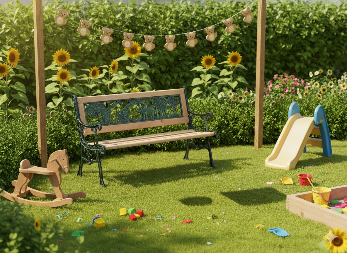 Dziecięca ławka ogrodowa to idealny dodatek do ogrodu, na taras lub do domowego placu zabaw. Połączenie drewnianych lameli i żeliwnej konstrukcji gwarantuje długą żywotność i stabilne siedzenie dla maluchów. Naturalny wygląd drewna i zielone elementy łatwo komponują się z otaczającą zielenią.