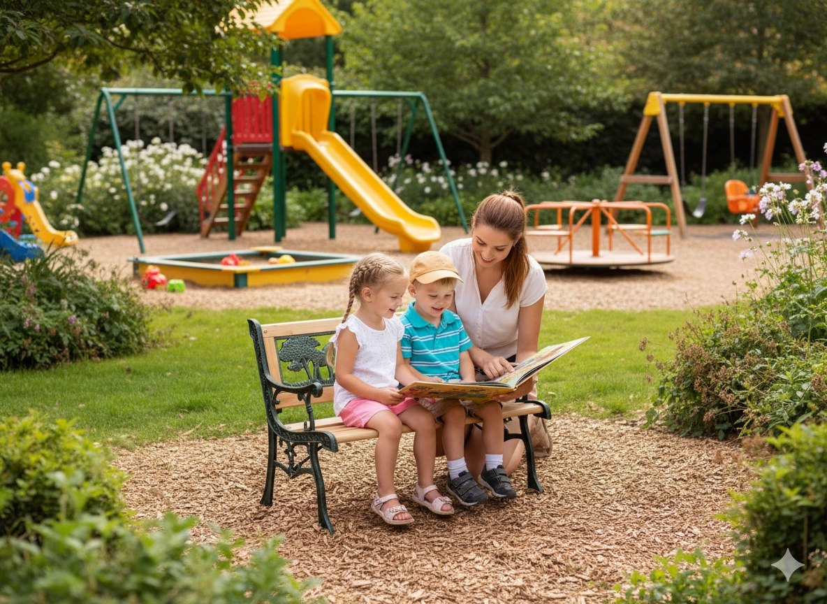 Świetnie pasuje do piaskownicy, zjeżdżalni czy huśtawek i tworzy przyjemne miejsce na odpoczynek między zabawami.