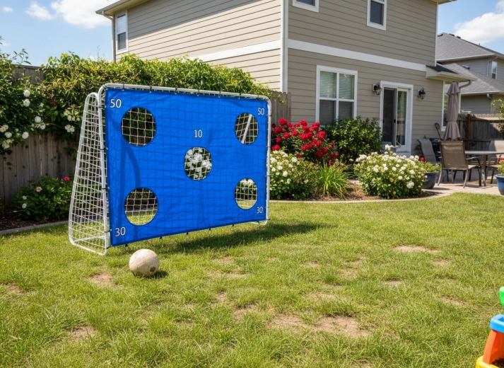 Tarcza z kilkoma otworami i punktacją motywuje do treningu celności, poprawia technikę wykończenia akcji i zapewnia zabawę dla wszystkich grup wiekowych.