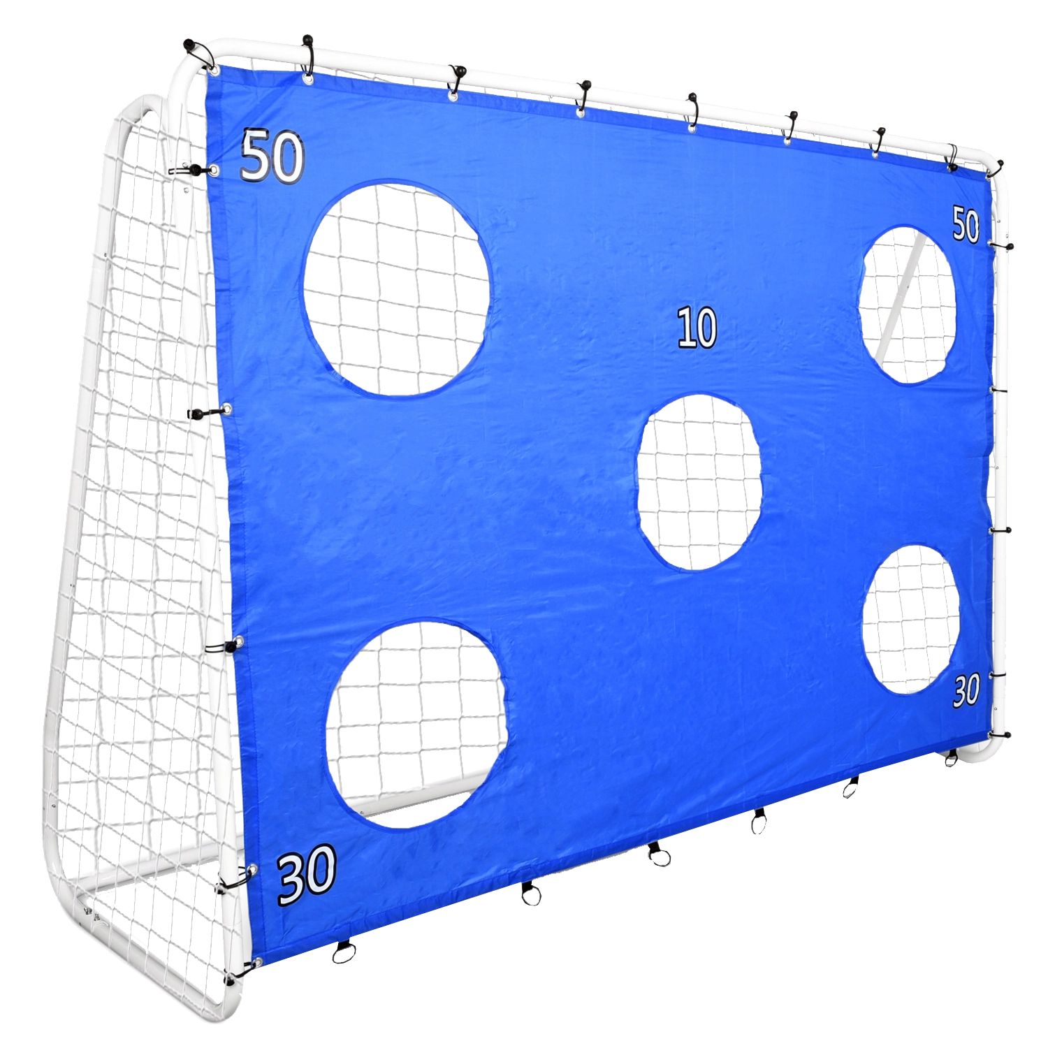 Popraw celność i siłę uderzeń dzięki dołączonej tarczy celowniczej z otworami, która zamieni każdy trening w rywalizację. Stalowa rama z rur o pogrubionych ściankach oraz kotwy gruntowe zapewniają stabilność, a wysokiej jakości siatka bezpiecznie zatrzymuje piłki.