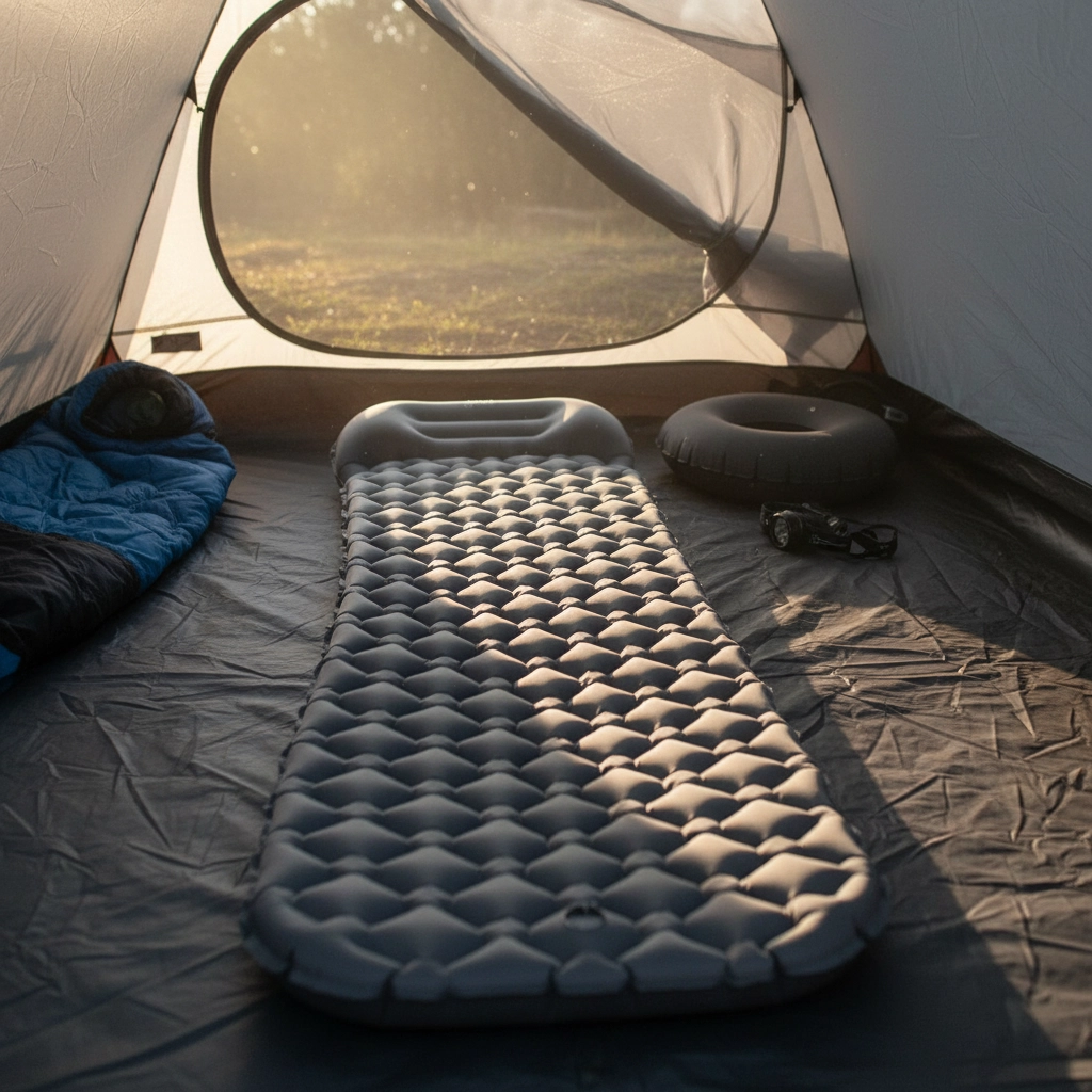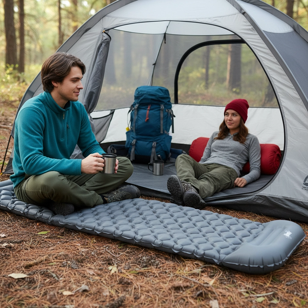 Materiał 40D ripstop z TPU zapewnia odporność na ścieranie i wilgoć oraz przyjemną izolację od podłoża.