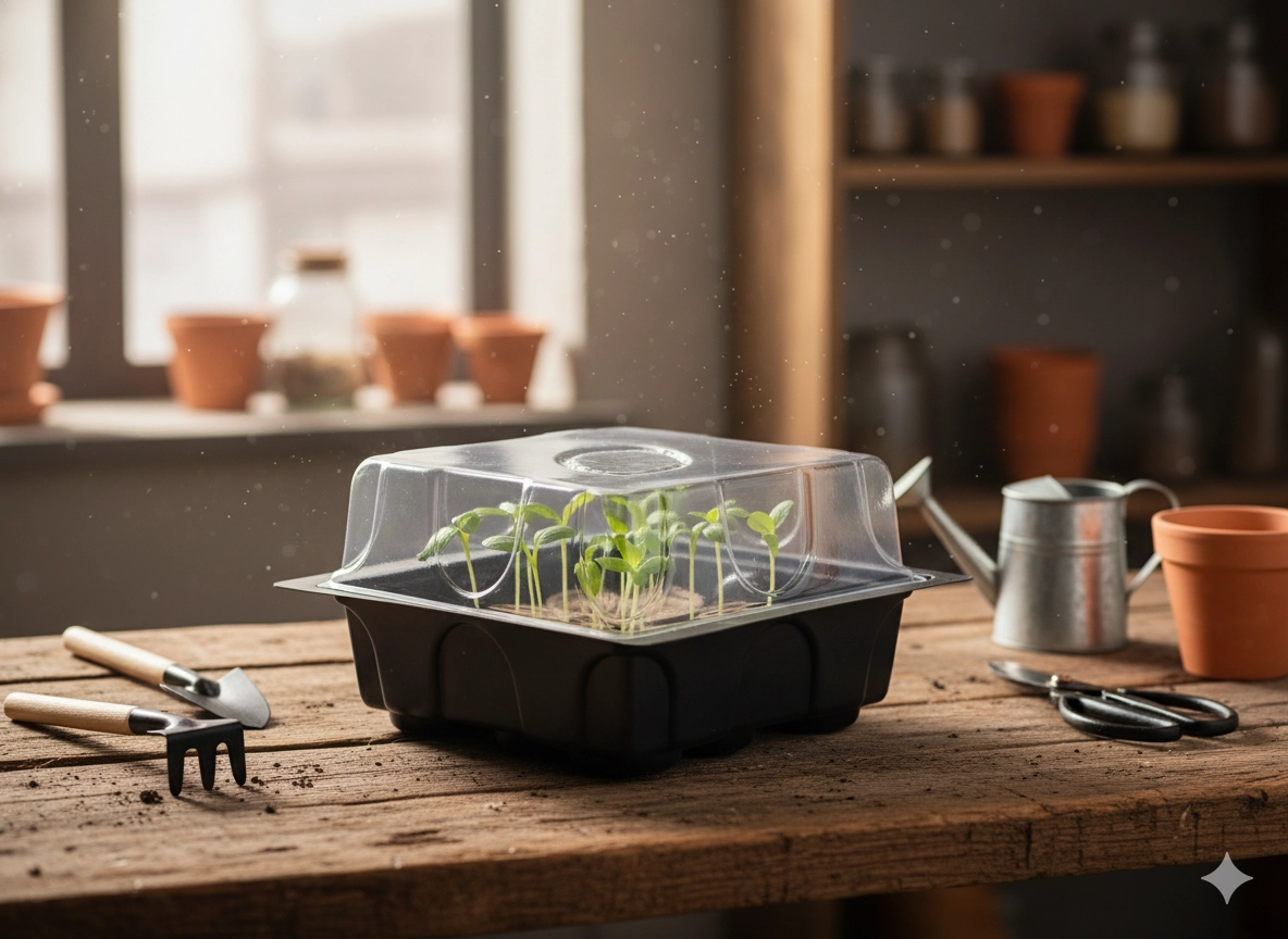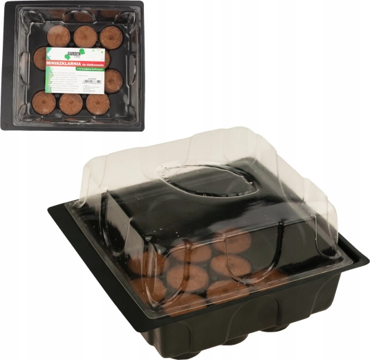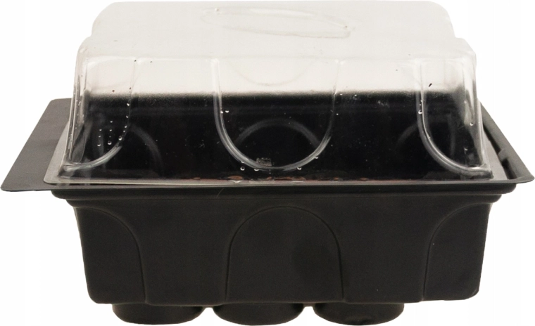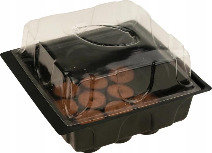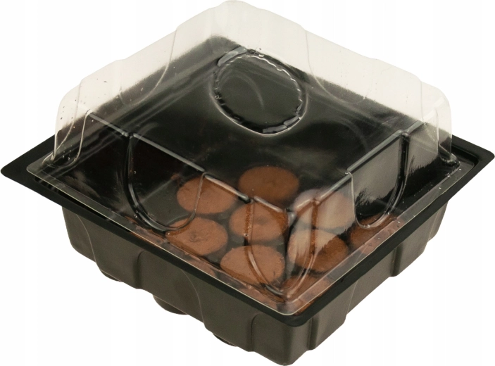Przezroczysta pokrywa z otworem wentylacyjnym utrzymuje ciepło i wilgoć, wspiera równomierne kiełkowanie i zdrowe sadzonki.