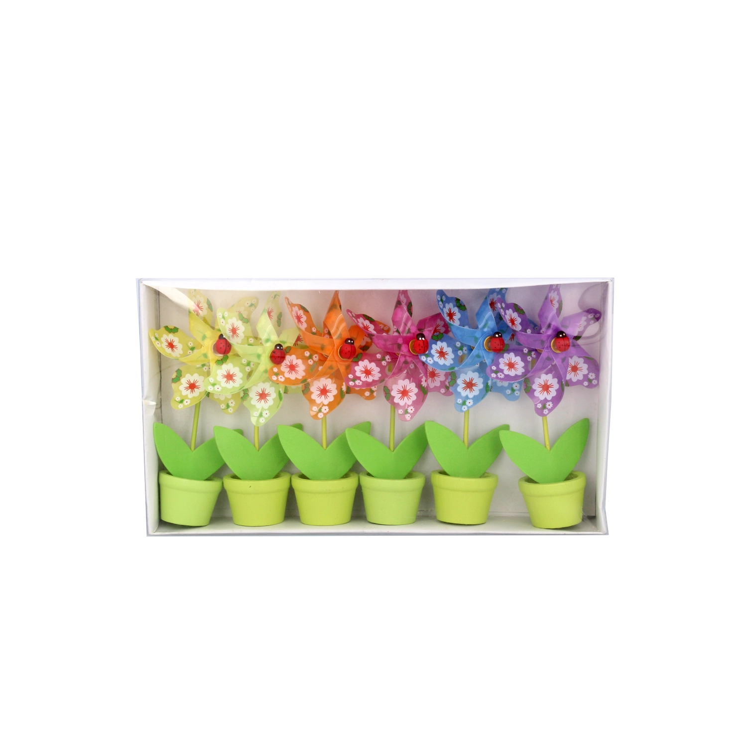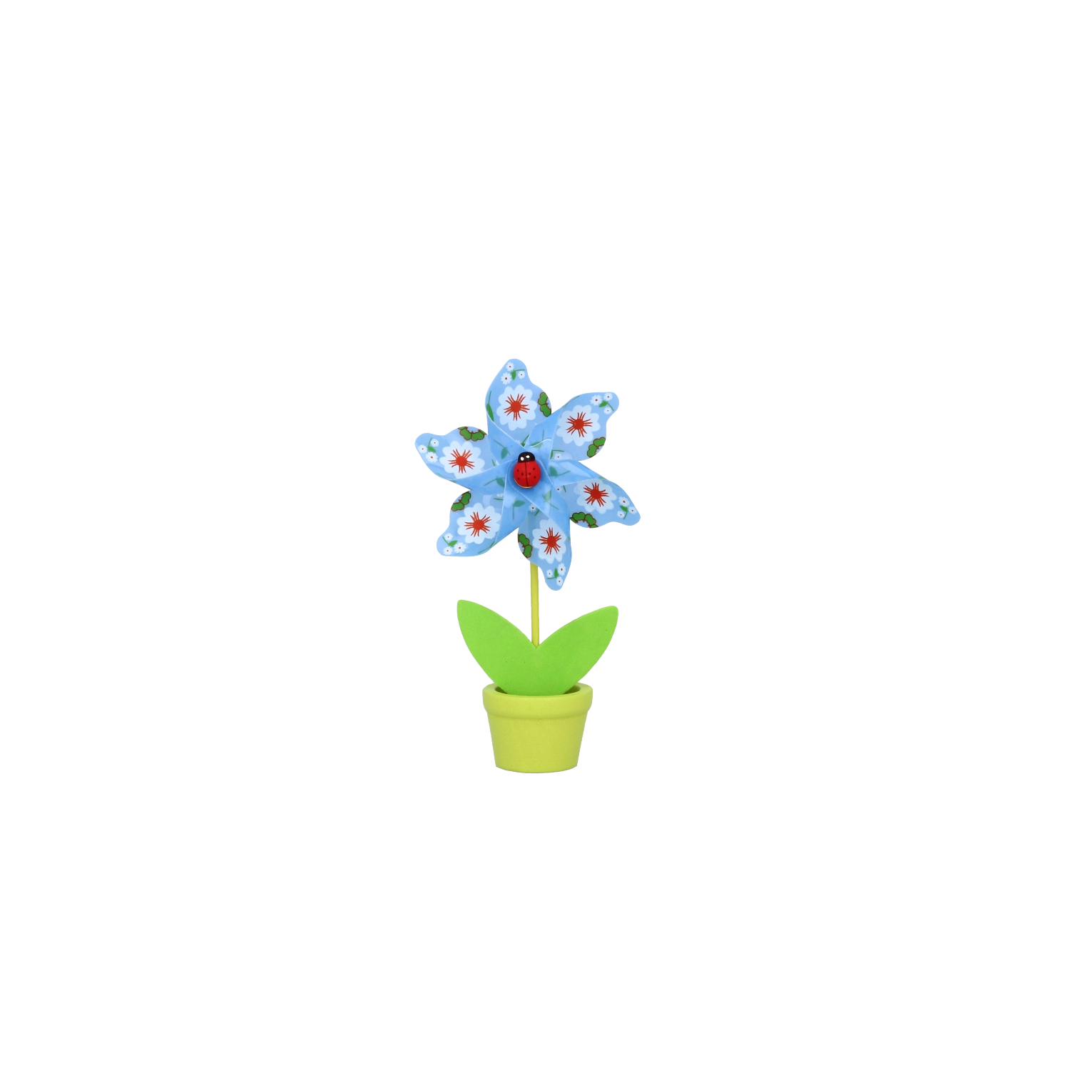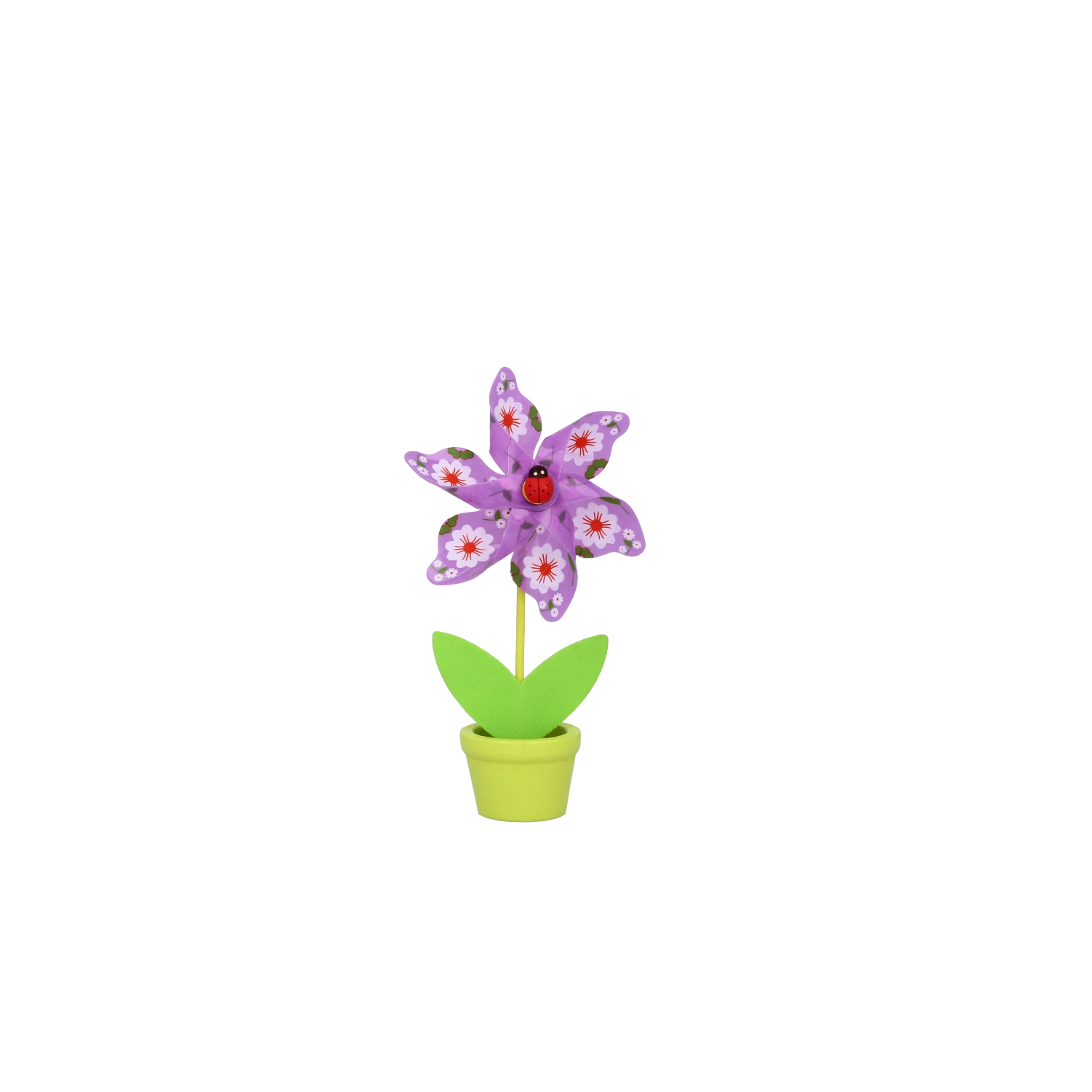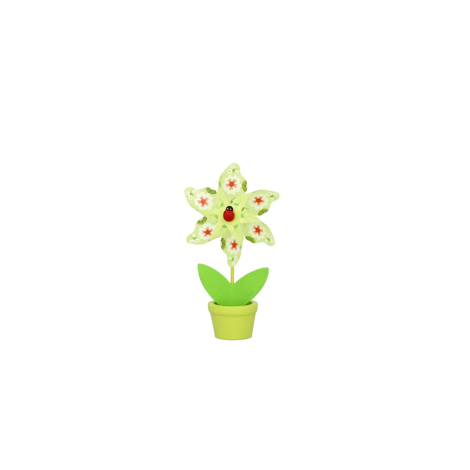 Uroczy dekoracyjny wiatraczek w kształcie kwiatu z biedronką ucieszy dzieci i dorosłych. Kompaktowy rozmiar 9 × 15 cm sprawdzi się na stole, parapecie i w pokoju dziecięcym. Dostępny w mixie 6 radosnych kolorów, wykonany z trwałych materiałów PVC, PP i drewna dla długiej żywotności i łatwej pielęgnacji.