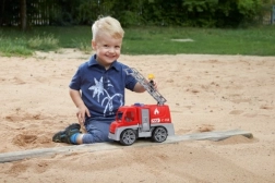 Wóz strażacki Truxx wykonany jest z wysokiej jakości plastiku i ma solidną konstrukcję, którą uzupełnia realistyczna figurka strażaka.
