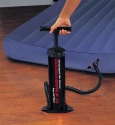 Intex Double Quick III to praktyczna pompka ręczna zaprojektowana do szybkiego i wygodnego pompowania. Dwuczynnościowy mechanizm tłoczy powietrze przy ruchu w górę i w dół, co wyraźnie skraca czas pompowania i oszczędza siły. Mocna konstrukcja ze stabilną podpórką pod stopę utrzymuje pompkę na miejscu nawet przy intensywnym użytkowaniu.
