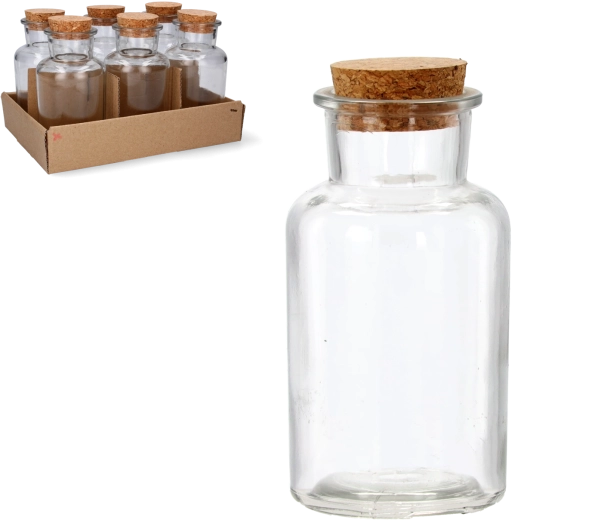 Stylowa szklana butelka o pojemności 250 ml z naturalnym korkiem do bezpiecznego zamknięcia. Dzięki grubemu szkłu jest wytrzymała, idealna na soki, ocet, olej oraz domowe likiery i nadaje napojom elegancki charakter.