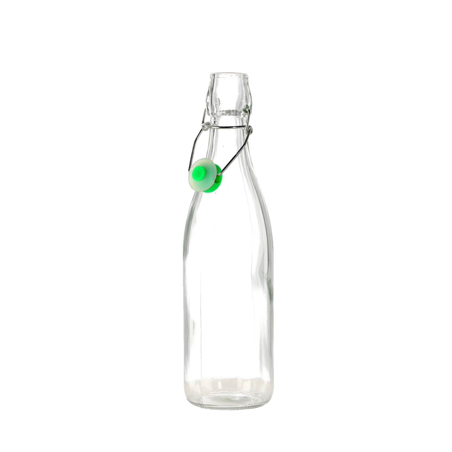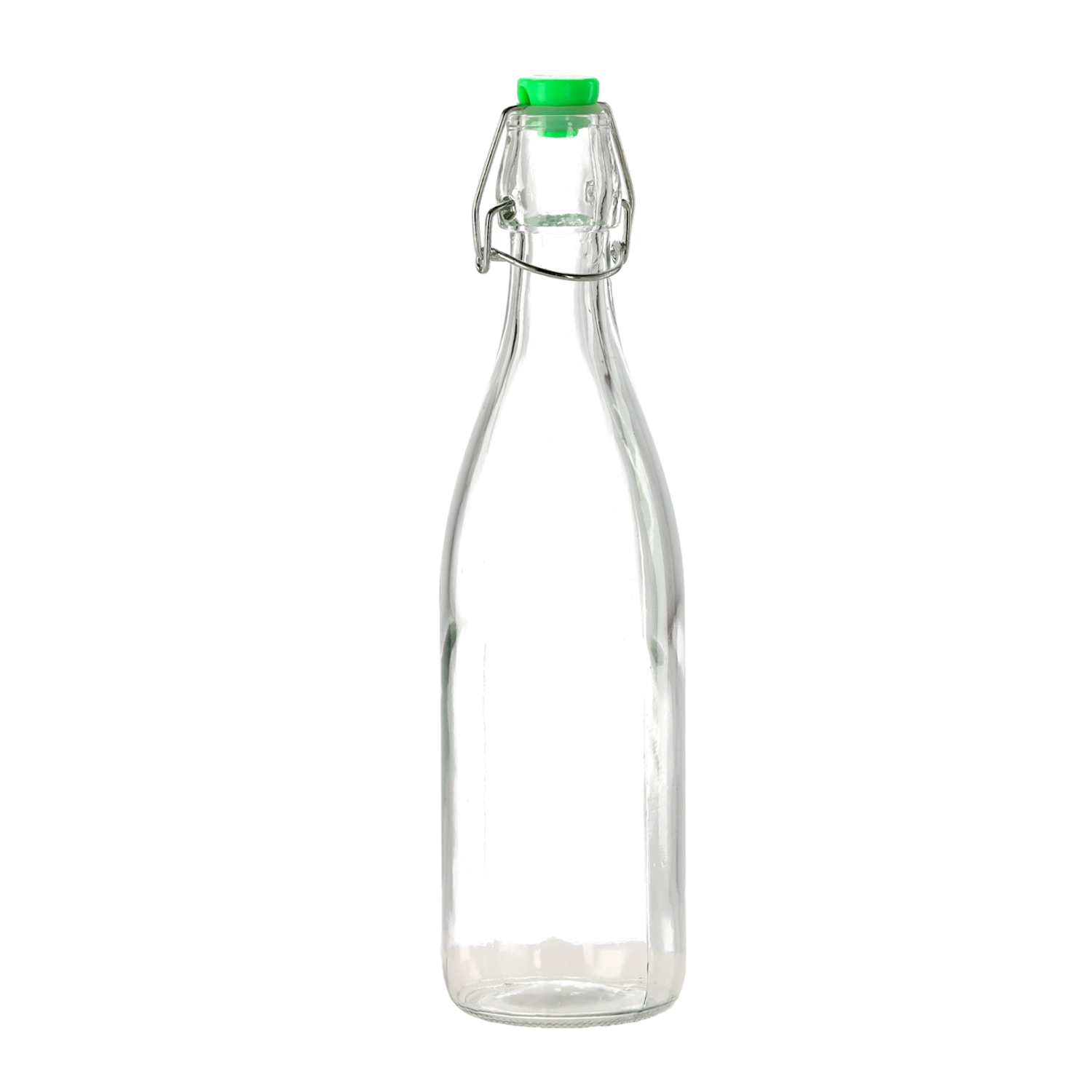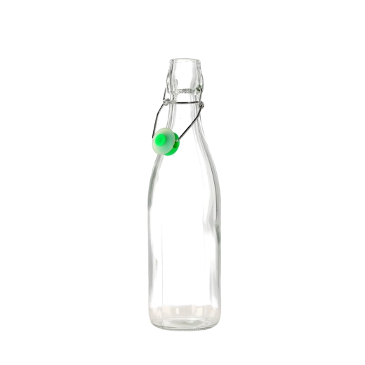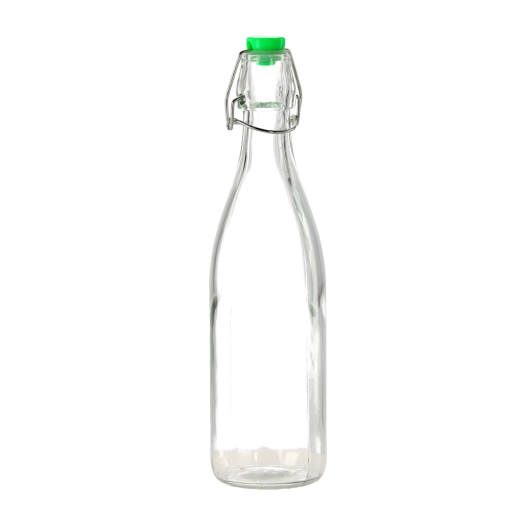 Praktyczna szklana butelka o pojemności 0,5 l z mechanicznym zamknięciem do bezpiecznego i stylowego przechowywania domowych soków, olejów czy likierów. Hermetyczne zamknięcie utrzymuje zawartość dłużej świeżą, przezroczyste szkło ułatwia kontrolę ilości, a wielokrotne użycie wspiera ekologiczne podejście w domu.