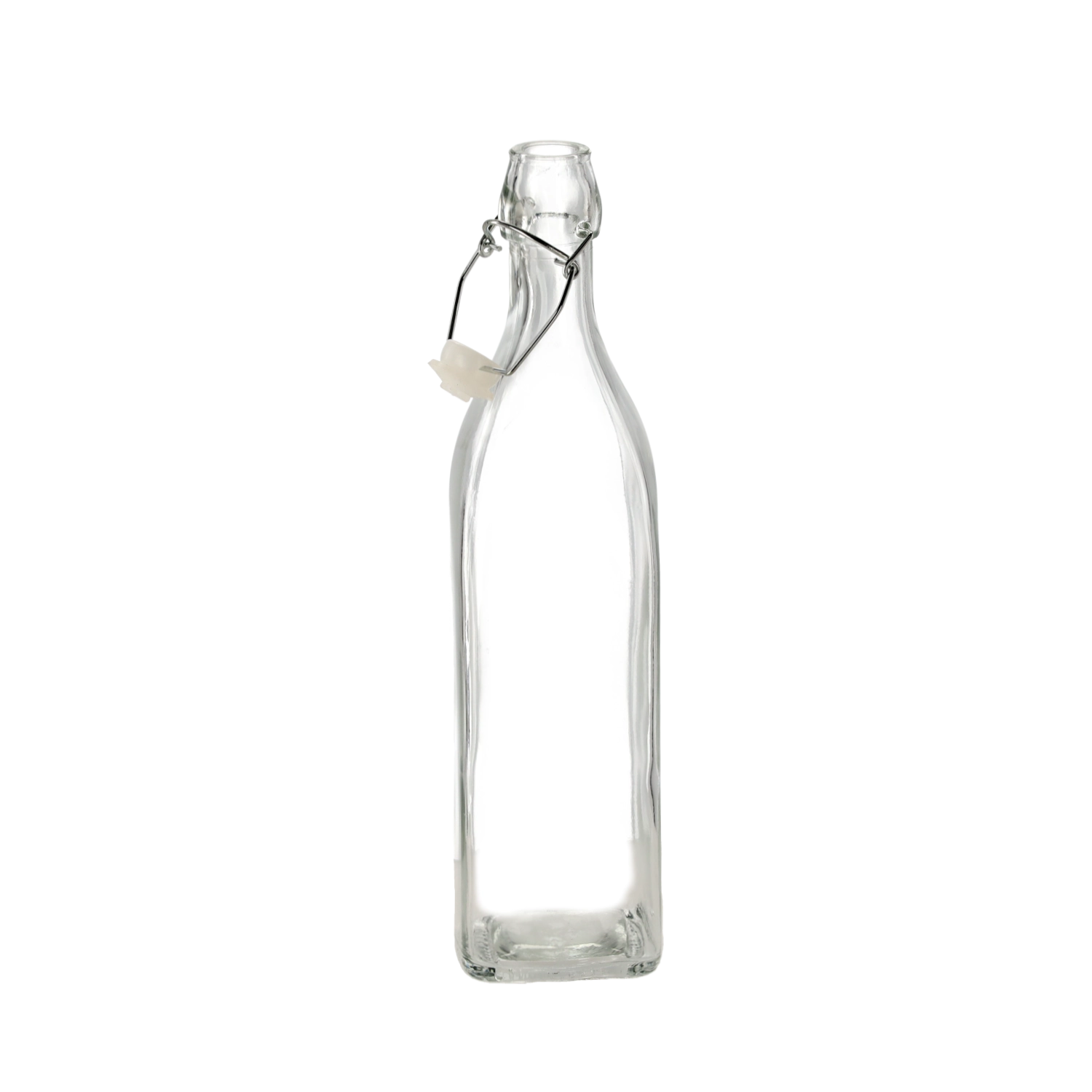 Ta praktyczna i stylowa butelka łączy funkcjonalność z estetyką. Dzięki mechanicznemu zamknięciu niezawodnie uszczelnia, chroni napoje przed powietrzem i zanieczyszczeniami oraz pomaga wydłużyć ich trwałość. Krystalicznie przejrzyste, wytrzymałe szkło z atestem do kontaktu z żywnością jest bezpieczne do codziennego użytku i umożliwia łatwą kontrolę zawartości.