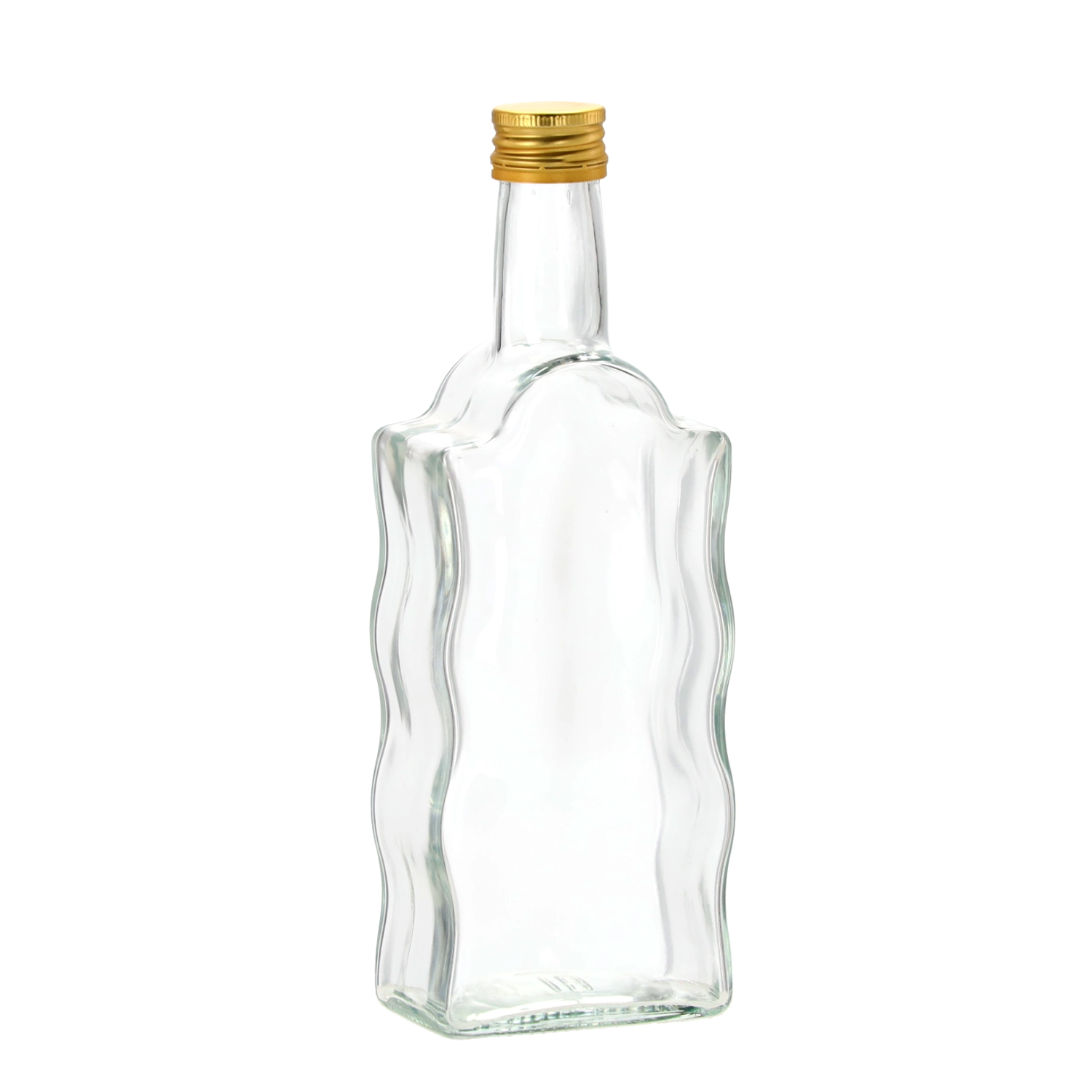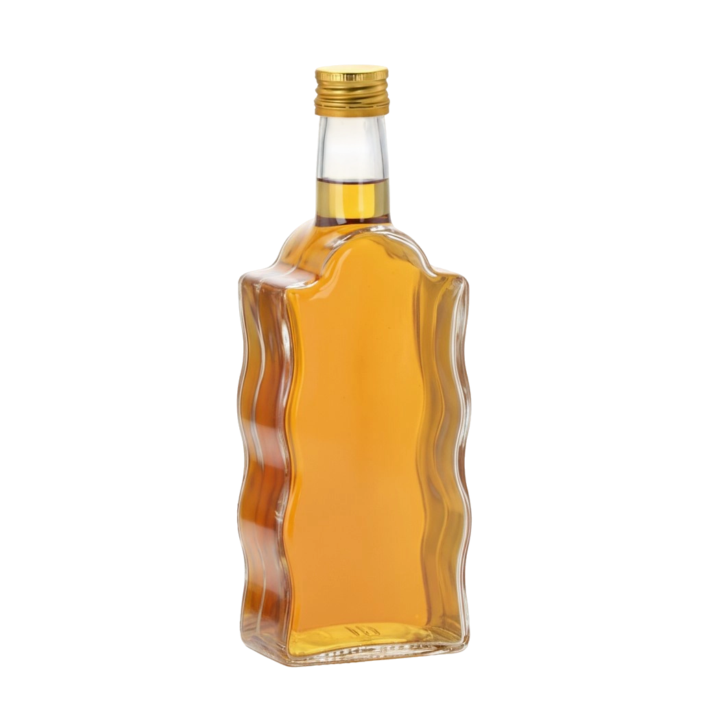 Elegancka szklana butelka Fala o pojemności 500 ml jest idealna do domowych likierów, wina, soków i syropów. Wykonana z wytrzymałego, przezroczystego szkła zapewnia bezpieczne przechowywanie i łatwą kontrolę ilości. Stylowy kształt z pofalowanymi bokami uzupełnia metalowa zakrętka 28 mm, która gwarantuje szczelne zamknięcie. Butelka jest odpowiednia do zmywarki i świetnie sprawdzi się także jako eleganckie opakowanie na domowe napoje.