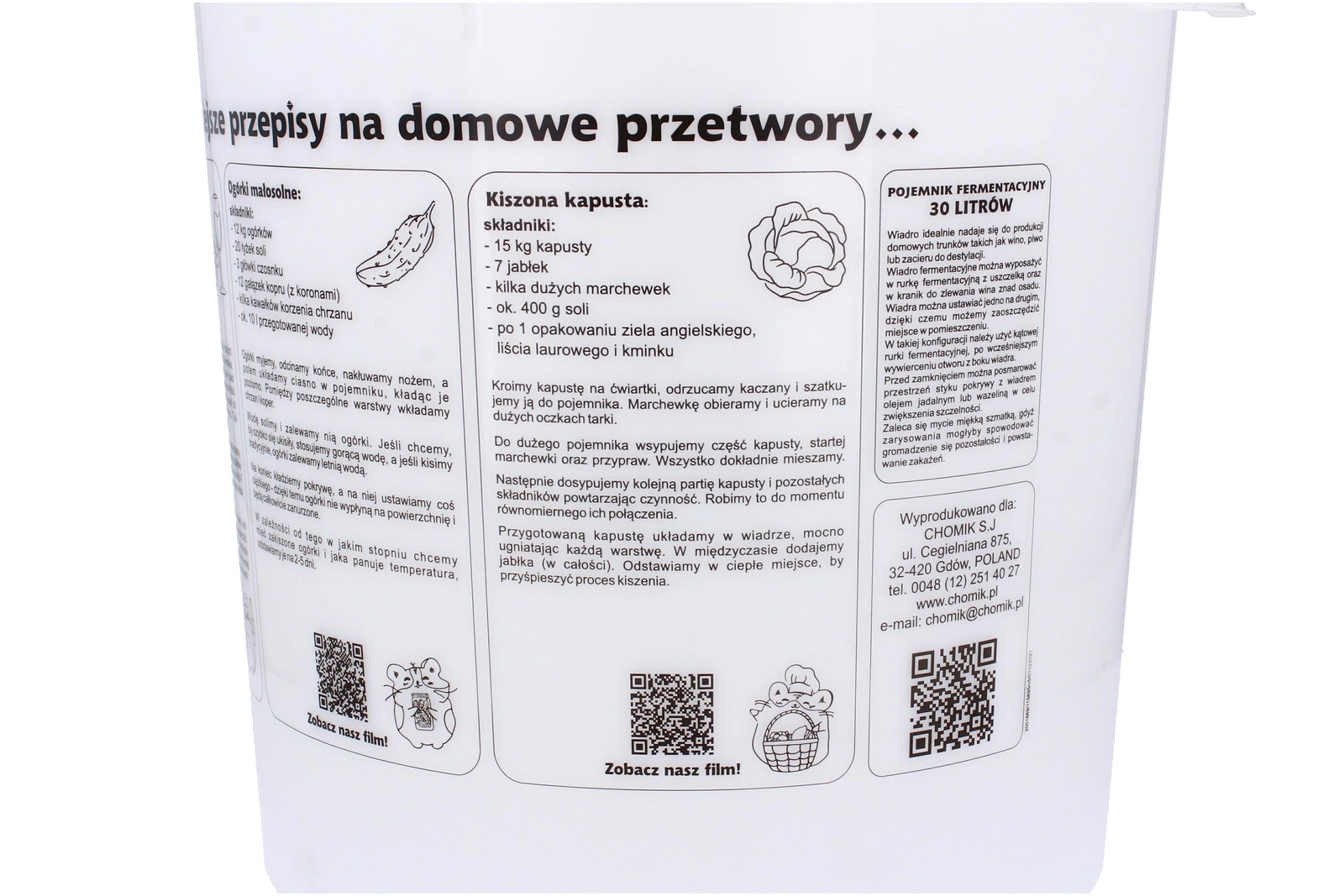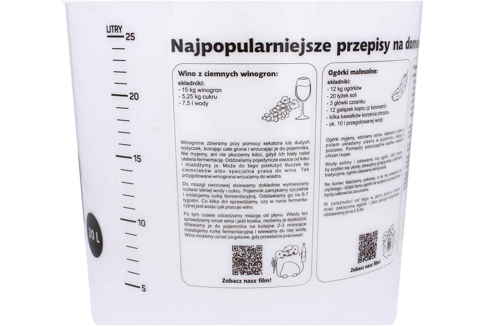 - Duża pojemność – dla wygodnej domowej fermentacji.