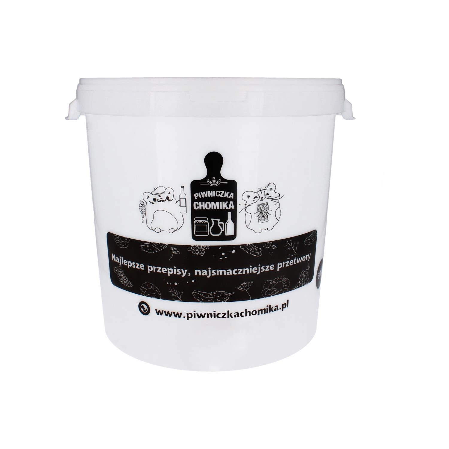Praktyczne wiadro fermentacyjne z pokrywą oferuje dużą pojemność użytkową 30 l, która jest doskonała do domowej fermentacji piwa, wina lub moszczów. Dzięki niskiej masie i starannie dobranym wymiarom łatwo je przenosić i przechowywać, a pokrywa pomaga chronić zawartość przed zanieczyszczeniami.