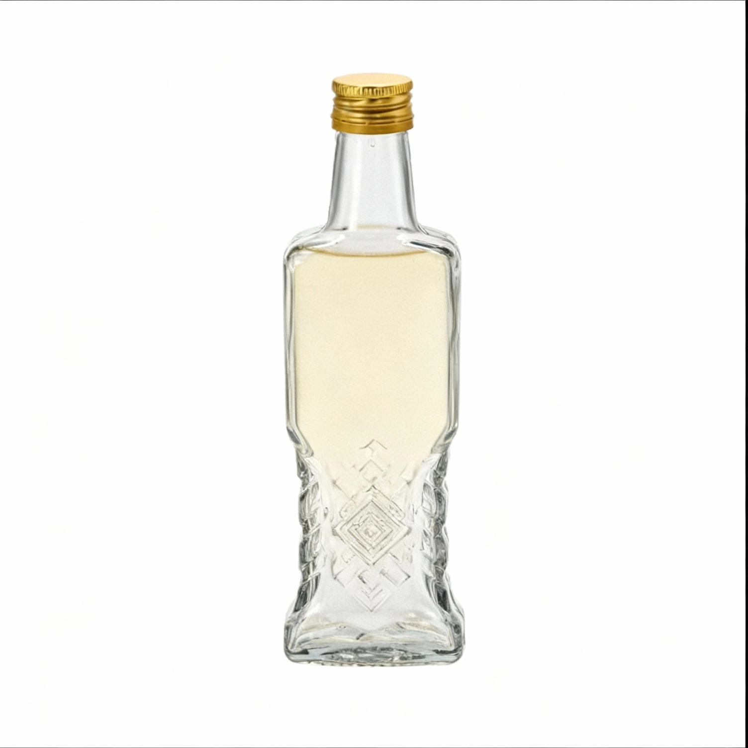 Butelka Ukrainka wyróżnia się ponadczasowym kwadratowym profilem z dekoracyjną teksturą, która poprawia chwyt i jednocześnie podkreśla estetykę domowych napojów. Dzięki pojemności 200 ml świetnie sprawdzi się w zestawach prezentowych, jako upominek ślubny oraz w edycjach degustacyjnych likierów i win.