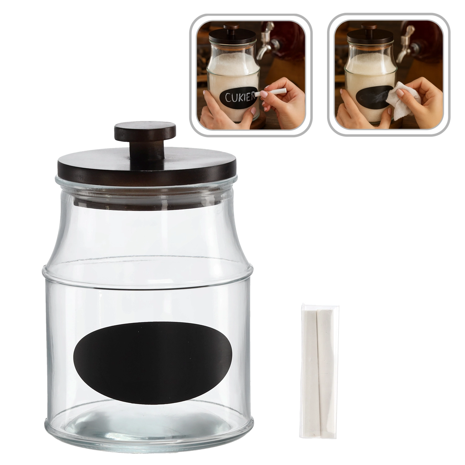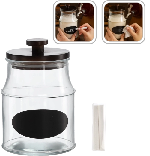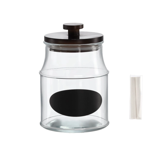 Utrzymuj porządek w swojej kuchni dzięki stylowemu szklanemu słoikowi o pojemności 2,2 l. Dzięki wysokiej jakości wykonania i drewnianej pokrywce żywność pozostaje dłużej świeża i chroniona. Praktyczna etykieta do opisu oraz dołączona kreda umożliwiają szybkie zmienianie nazwy lub daty przydatności.