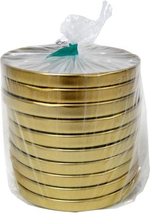 Praktyczny zestaw 10 złotych wieczek o średnicy 82 mm z 4 gwintami jest idealny do bezpiecznego zamykania słoików z domowymi przetworami i kompotami. Dzięki wysokiej jakości wykonaniu z ocynkowanego metalu wieczka są odporne na kwas cytrynowy, sól warzoną i ocet. Wewnętrzna warstwa uszczelniająca zapewnia hermetyczne zamknięcie, wydłuża trwałość i utrzymuje świeżość żywności, a elegancki złoty kolor nadaje Twoim wyrobom reprezentacyjny wygląd.