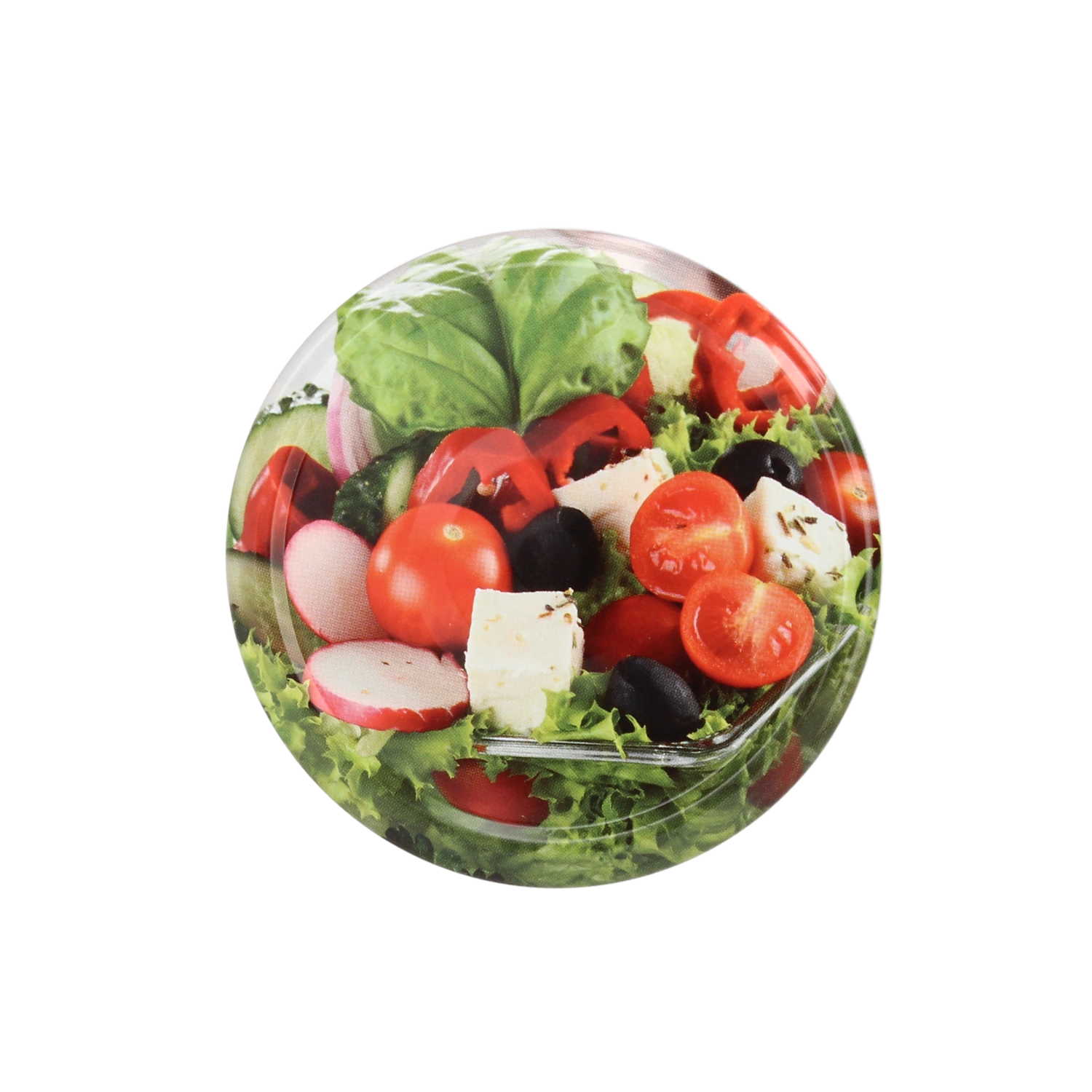 Postaw na wytrzymałe metalowe wieczka o średnicy 66 mm i czterech zatrzaskach, które zapewniają szczelne zamknięcie bez przeciekania. Dekor z motywem warzyw ożywi Twoje słoiki i nada domowym zapasom profesjonalny wygląd.