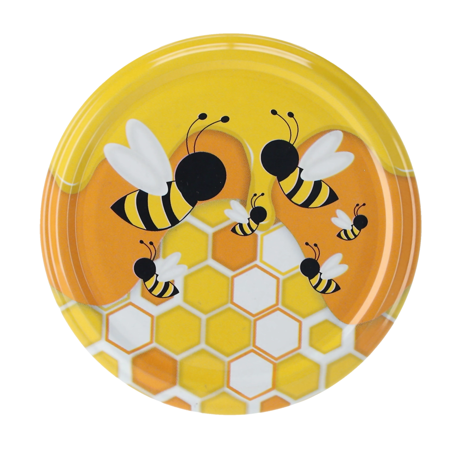 Te wieczka to świetny wybór dla pszczelarzy, małych producentów oraz do domowego wekowania. Grafika z pszczółką przyciąga wzrok i pomaga wyróżnić Twój produkt na półce.