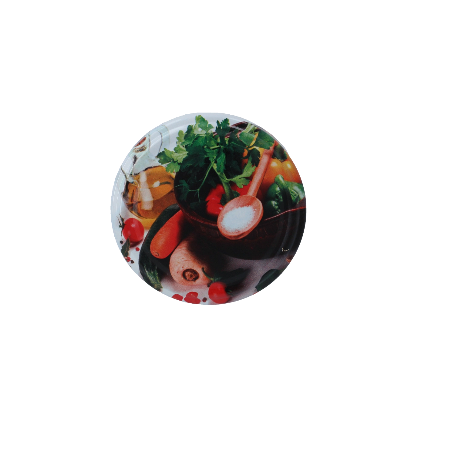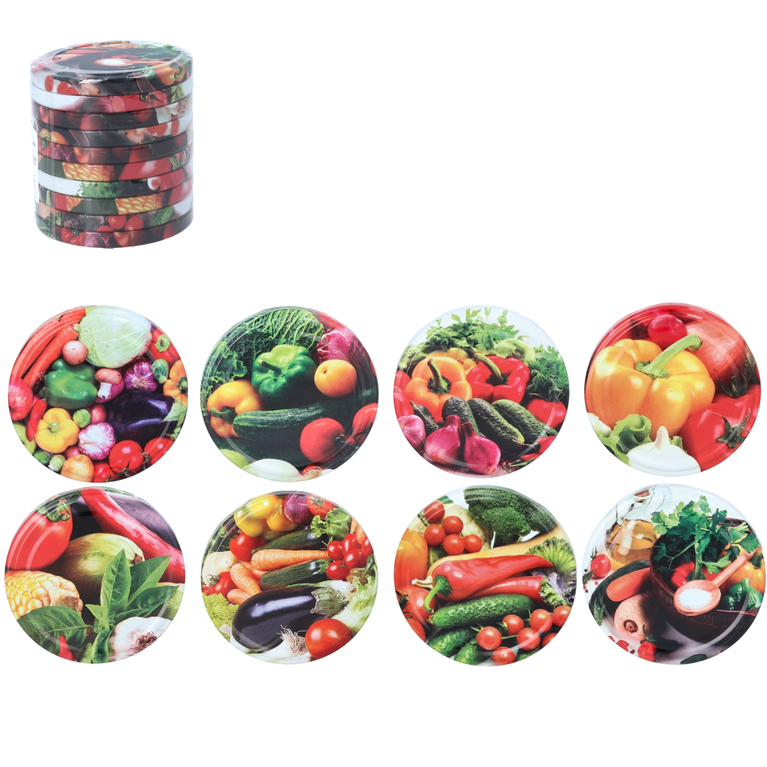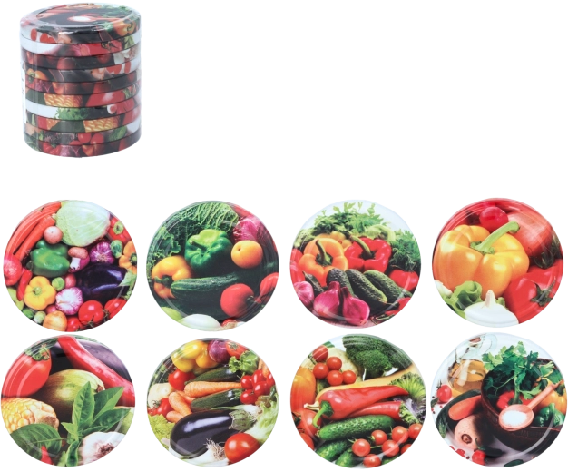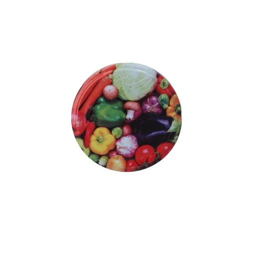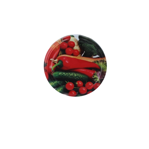 Wykonane z wysokiej jakości metalu przeznaczonego do kontaktu z żywnością, chronią przed wysychaniem, wilgocią i utlenianiem. Błyszcząca powierzchnia z kolorowym motywem warzyw nadaje przetworom schludny i estetyczny wygląd w każdej kuchni. Wieczka są przeznaczone do wielokrotnego użytku i łatwe w utrzymaniu.