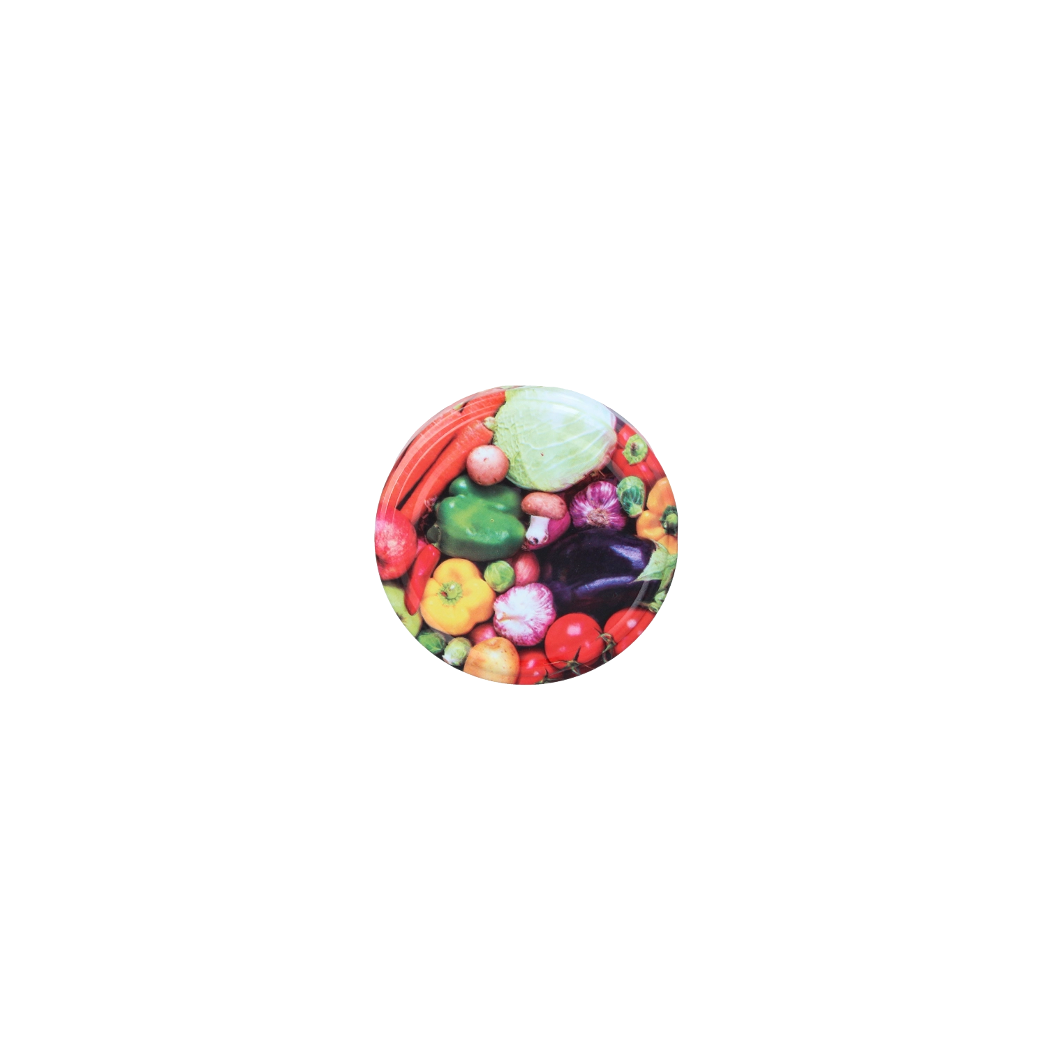 Wesoły, wielobarwny nadruk warzyw upiększy Twoje słoiki i pomoże szybko rozróżnić zawartość w spiżarni.
