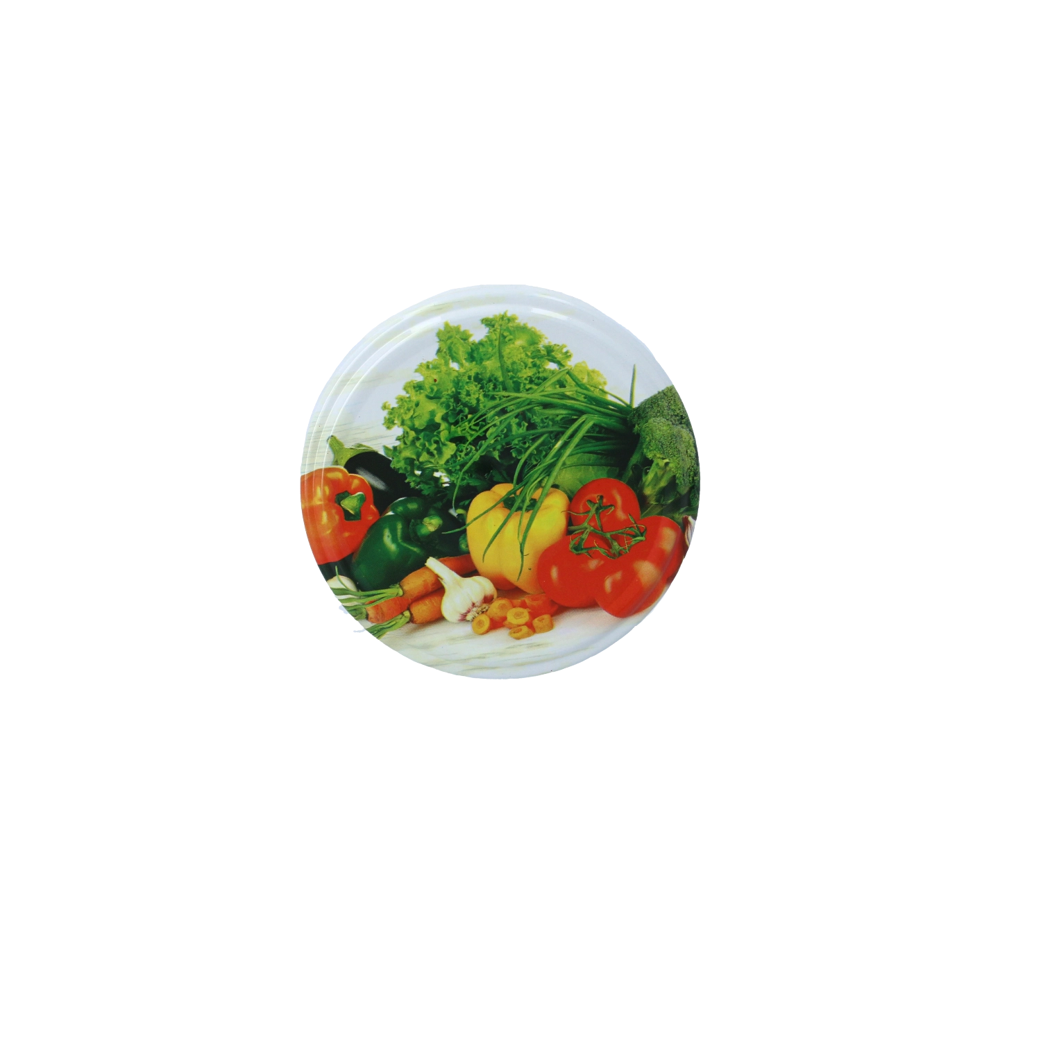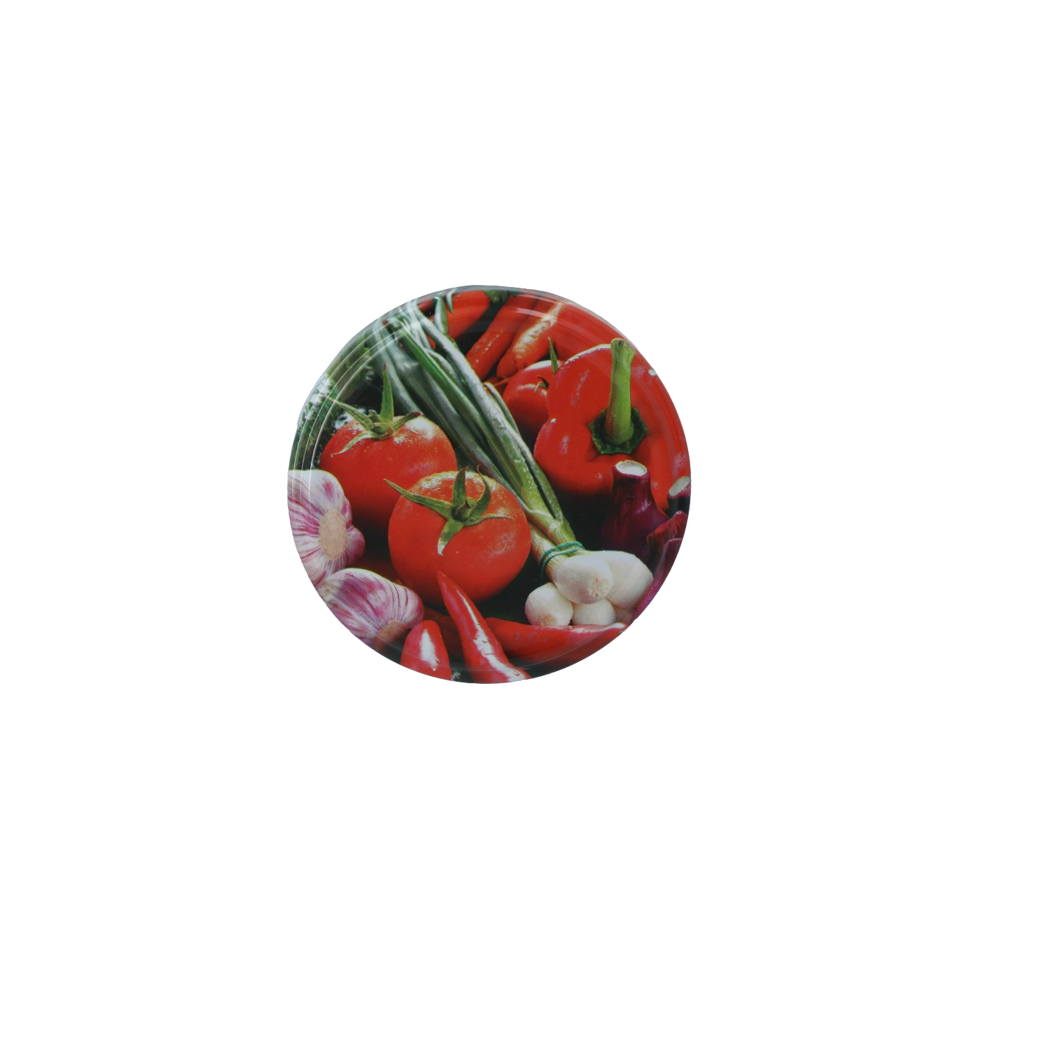 Elegancki motyw warzyw w pełnokolorowym nadruku nada Twoim słoikom atrakcyjny wygląd – świetny do pakowania prezentowego domowych dżemów, sałatek czy warzyw marynowanych. Wieczka są odpowiednie do wielokrotnego użytku – po użyciu wystarczy je umyć i można ponownie założyć.