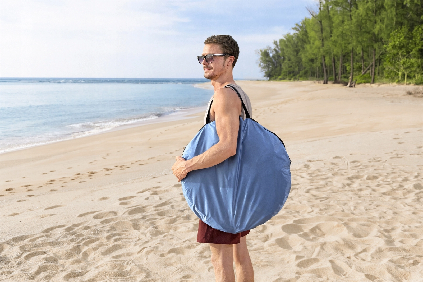 Dzięki masie zaledwie 1,1 kg i praktycznej torbie transportowej namiot to idealny towarzysz podróży. Docenisz też wewnętrzną kieszeń na drobiazgi, szybkie pakowanie do kompaktowego okrągłego etui oraz niezawodną ochronę przed słońcem i wiatrem.