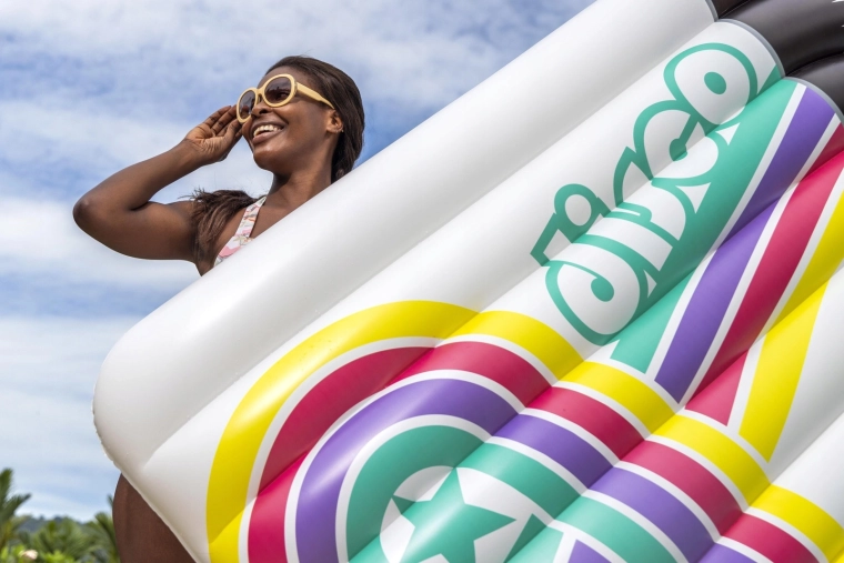 Bestway LP Lounger łączy ikoniczny retro design „disco” z nowoczesną wytrzymałością. Dzięki wielu komorom powietrznym i żebrowanej powierzchni oferuje wygodne leżenie oraz świetną stabilność wypornościową dla jednej osoby dorosłej. Ochronna technologia Color Shield pomaga utrzymać nasycone kolory, a jednocześnie zapobiega przenoszeniu barwy na mokrą skórę.