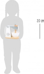 Zabawa robotem kuchennym rozwija motorykę małą, wyobraźnię oraz umiejętności społeczne podczas wspólnej zabawy. Ponadczasowy drewniany design świetnie wpasuje się w każdą dziecięcą kuchnię i zapewni długie godziny kreatywnego gotowania.