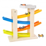 Zabawny drewniany tor wyścigowy klip klap z kolorowymi rampami i czterema samochodzikami to doskonały sposób na rozwijanie umiejętności motorycznych i koordynacji u dzieci. Stabilna podstawa i nowoczesna kolorystyka zapewniają, że tor stanie się ulubionym dodatkiem każdego dziecięcego pokoju.