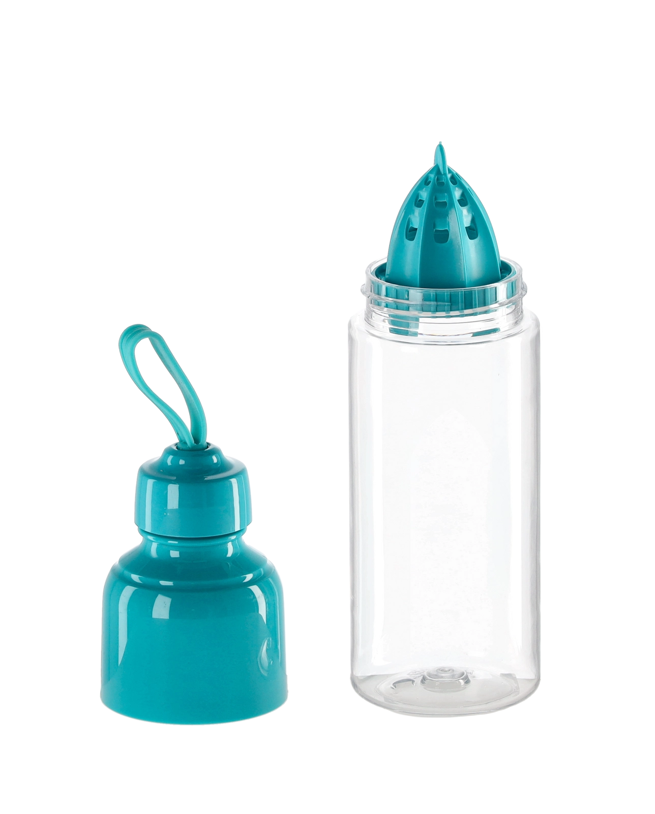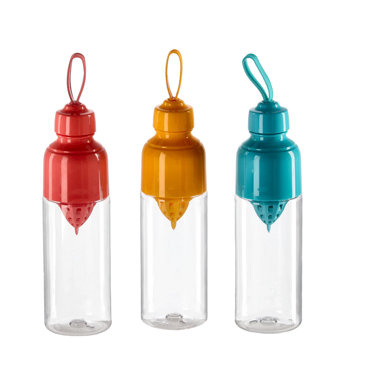 Odśwież swój sposób nawadniania świeżym sokiem cytrusowym bezpośrednio w butelce. Zintegrowana wyciskarka do cytrusów umożliwia szybkie wyciskanie i bezpośrednie wzbogacenie wody sokiem pełnym witamin. Przezroczyste korpus butelki ułatwia kontrolę zawartości, a dzięki kompaktowym wymiarom mieści się w torbie i plecaku.