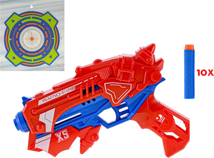 W zestawie znajduje się tarcza oraz 10 piankowych nabojów, co pozwala dzieciom trenować celność i rywalizować z przyjaciółmi. Wytrzymała konstrukcja z tworzywa zapewnia długą żywotność nawet przy częstym użytkowaniu.