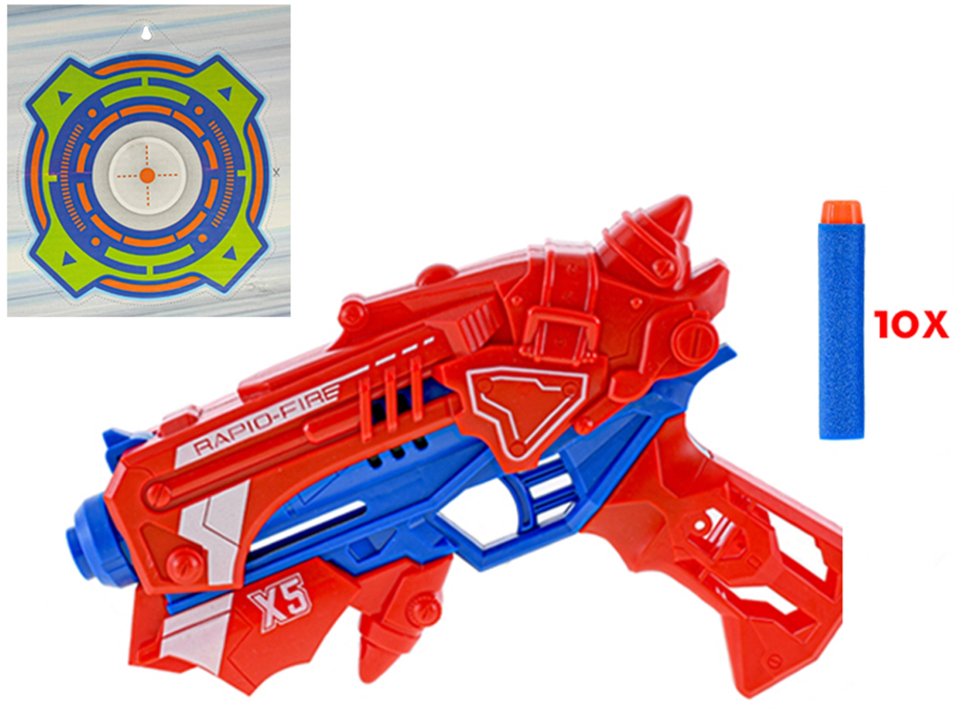 - 1 pistolet, 10 piankowych nabojów, 1 tarcza