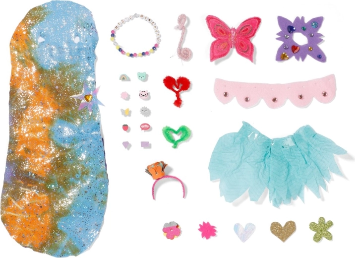 W zestawie znajdują się tekstylne akcesoria, przypinane dekoracje oraz urocze zwierzątko z odpinaną płetwą. Dołączona broszurka oferuje pomysły DIY, jak stylizować lalkę i dodatki również z materiałami, które dzieci mają w domu. Aura to idealny wybór dla dzieci od 4 lat, które kochają kreatywny styling, zabawę i blask.