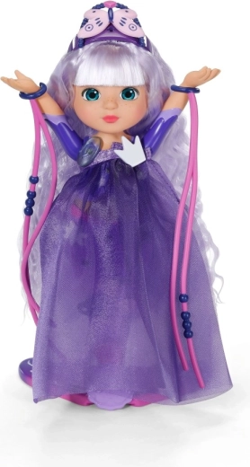 Długie fioletowe włosy zmieniają na słońcu kolor, dając zachwycający efekt wizualny i nowe stylizacje przy każdej zabawie.
