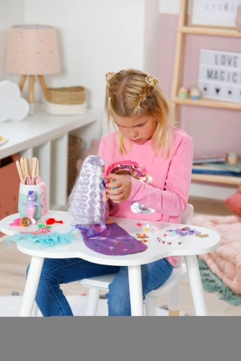 Lalkę można czesać, ozdabiać i dekorować – łącz tekstylne dodatki i przypinane ozdoby dla nieskończonych wariacji.