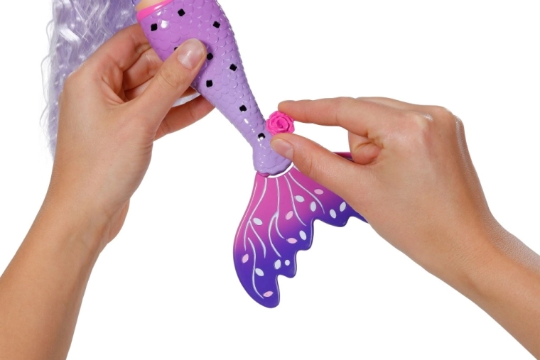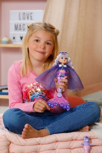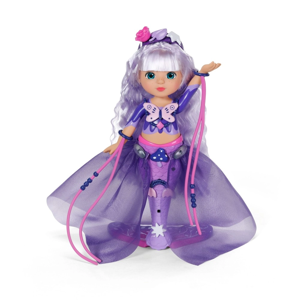 Syrena Aura daje dzieciom nieskończone możliwości tworzenia. Jej długie fioletowe włosy z czarem UV pod wpływem światła słonecznego zmieniają odcień i zapewniają natychmiastowy efekt wow. Dzięki bogatemu wyposażeniu dzieci mogą tworzyć błyszczące fryzury, ozdabiać płetwę i strój oraz wymyślać oryginalne podwodne historie.