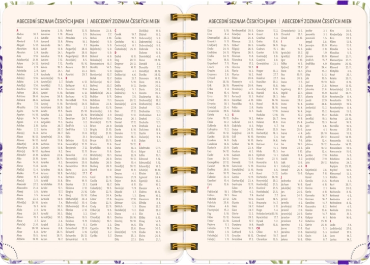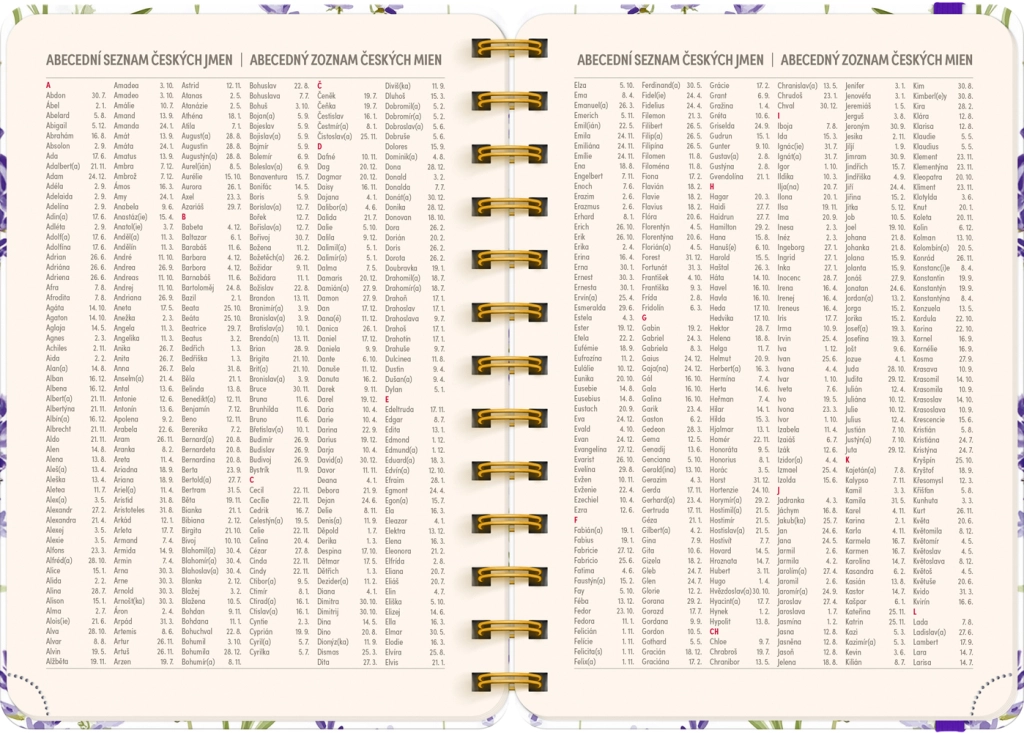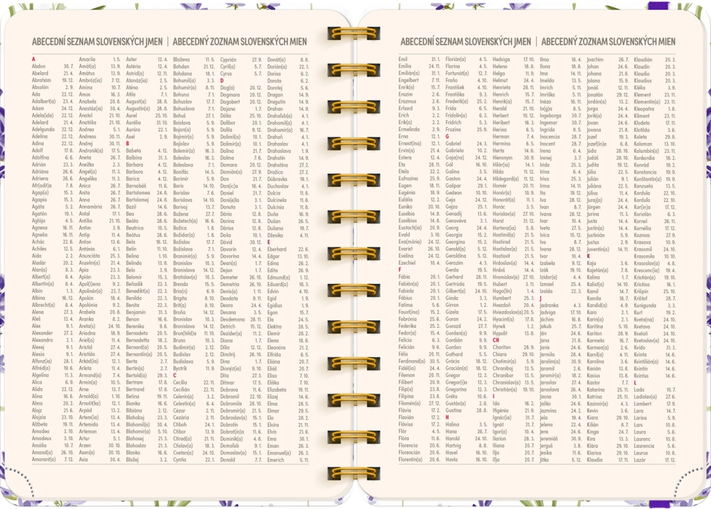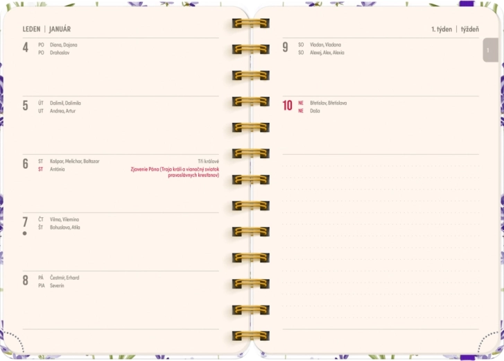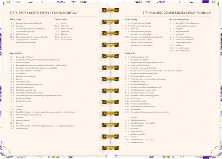 - Tygodniowe kalendarium liniowe z czeskimi i słowackimi imieninami oraz świętami