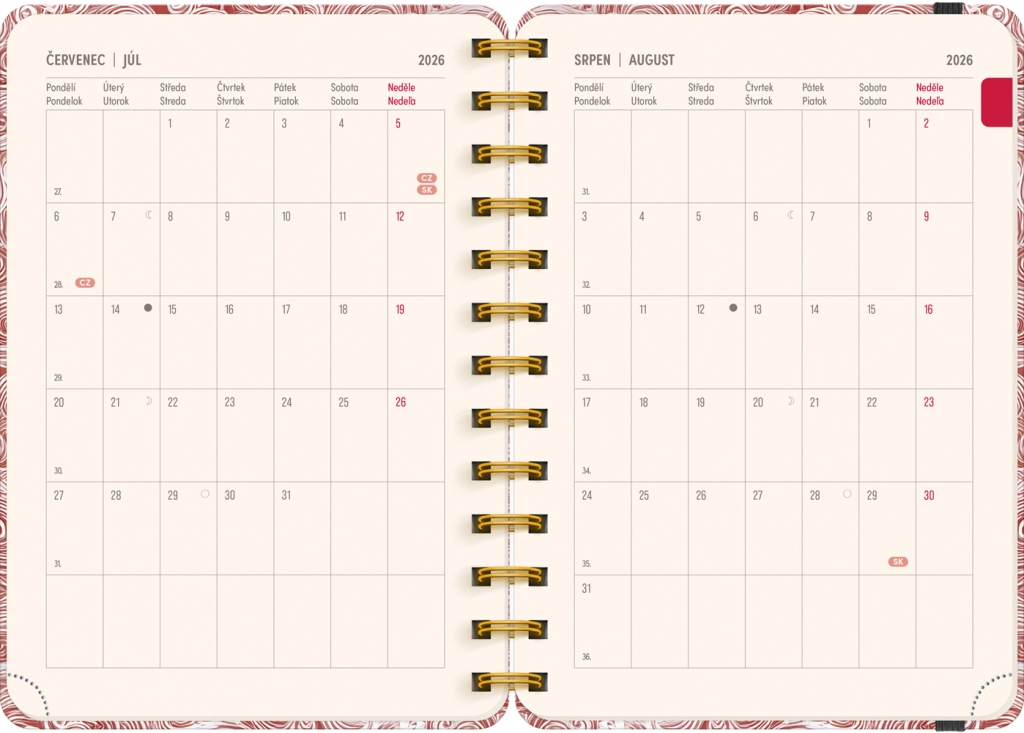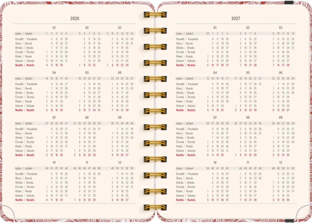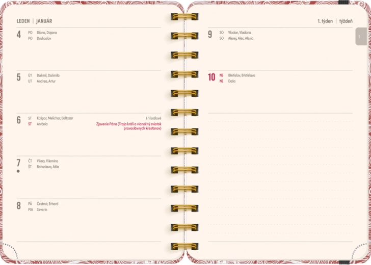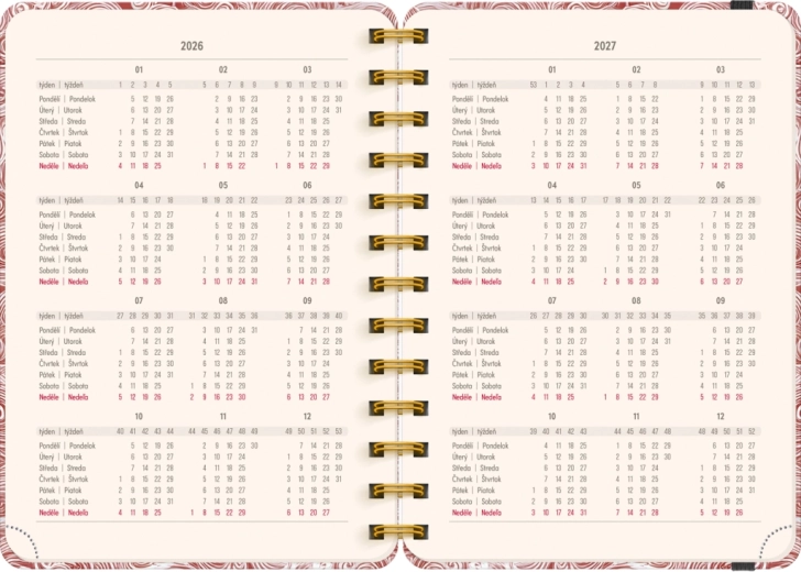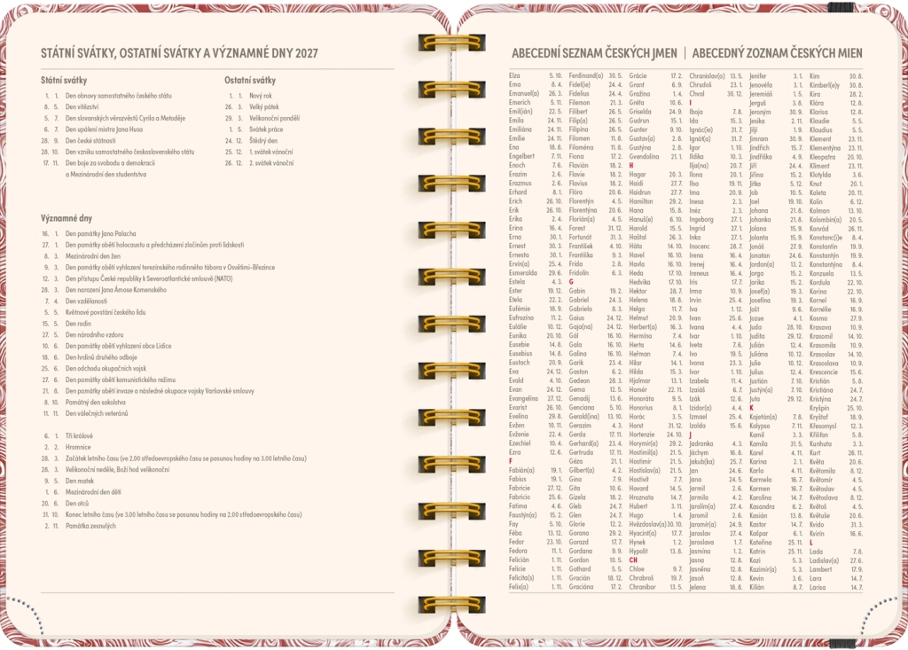 Terminarz zawiera wszystko, czego potrzebujesz do efektywnej organizacji czasu: roczne przeglądy 2026 i 2027, listę czeskich i słowackich imion oraz dużo miejsca na notatki w każdym tygodniu. Motyw Chmury doda Twoim planom lekkości i przejrzystości.