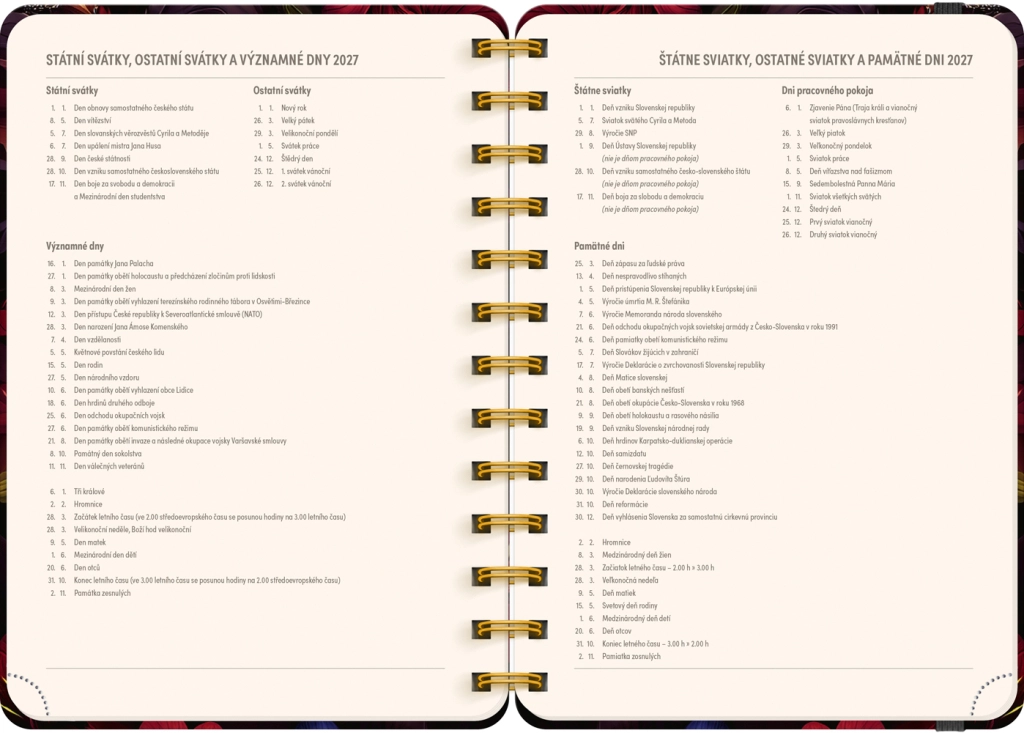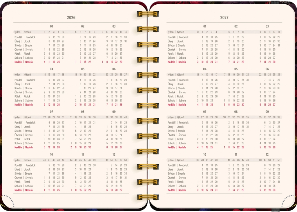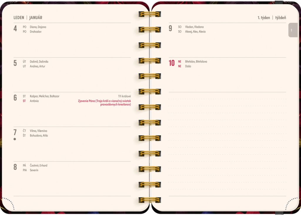 Wybierz stylowego partnera do planowania – 18‑miesięczny terminarz Petito w designie czerwonych kwiatów. Dzięki przejrzystemu czesko‑słowackiemu kalendarium tygodniowemu z imieninami i świętami zawsze będziesz mieć kontrolę nad ważnymi datami. Spiralna oprawa umożliwia wygodne otwieranie i pisanie na płasko.